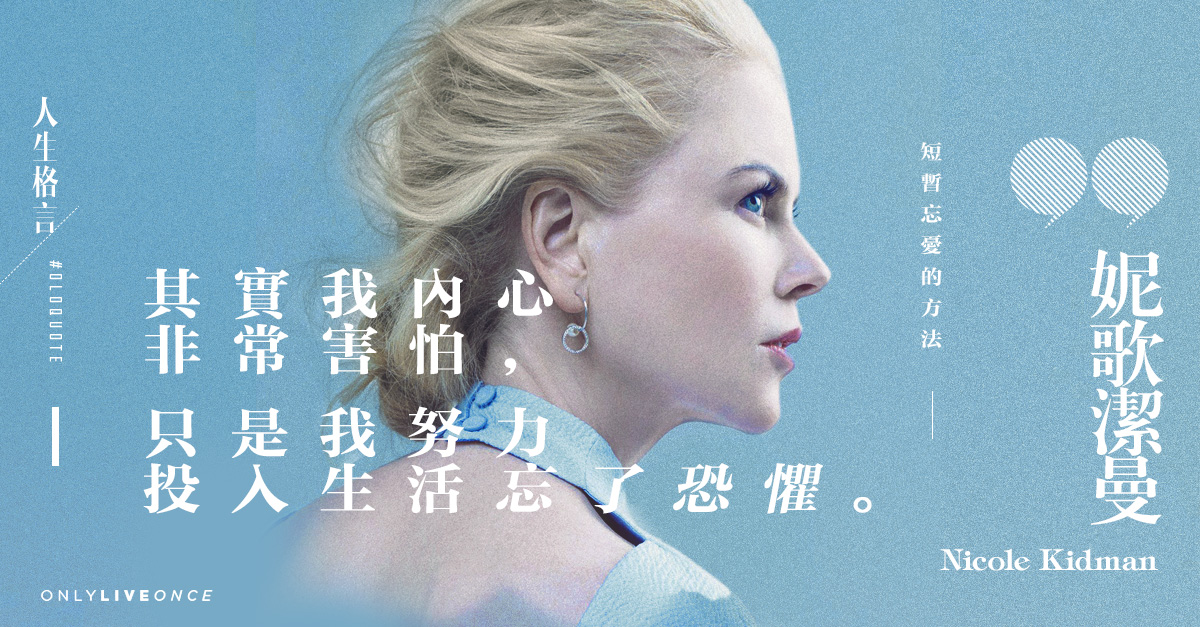 Nicole Kidman 曾於訪問中分享到,那年她和丈夫 Tom Cruise 離婚時,她心裏其實不知怎麼辦。旁人都看她定會一蹶不振,她卻把全副心思花在事業上,以工作麻醉自己。「老實說,我當時其實一直在逃離我的人生,我無法處理我現實生活的人生,而身為一位演員,最棒的地方就是你可以完全沈浸在另一個人的人生中,在某一段時間裡成為另一個人。」 定過神來,已是幾年,回頭看,她才發現自己已創造出事業高峰,當天心中恐懼的各種已有了依靠。