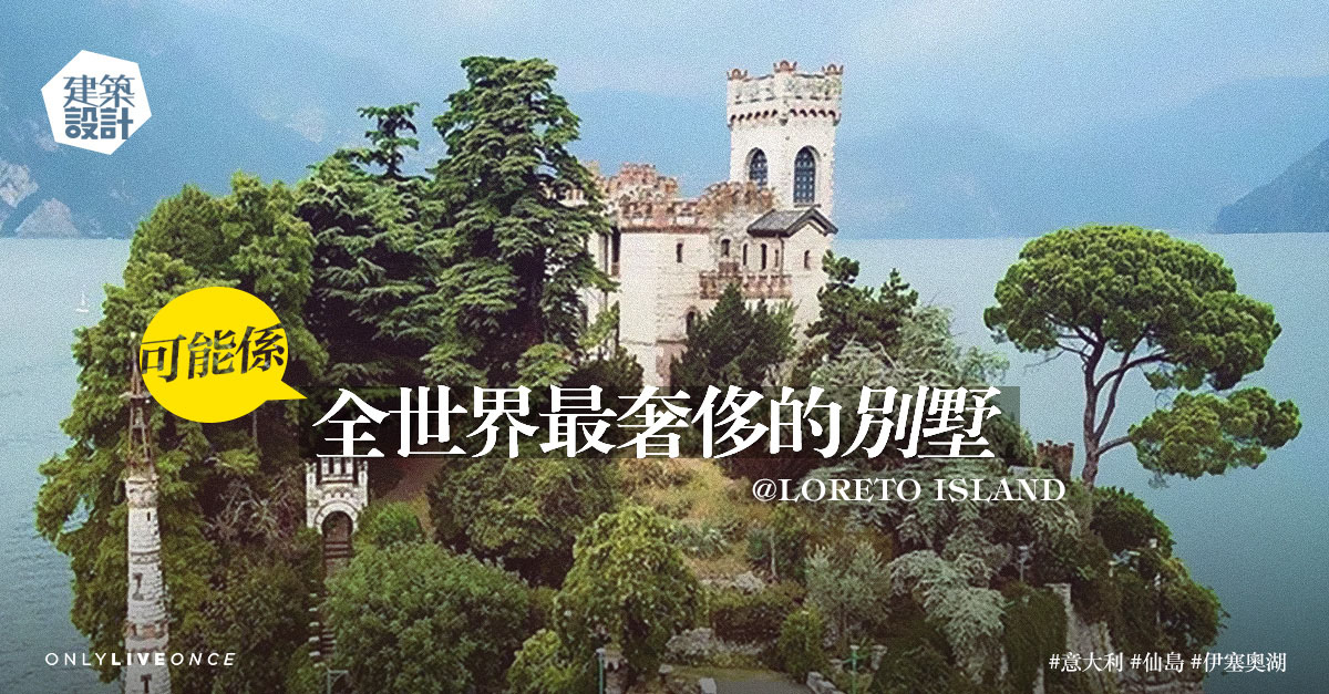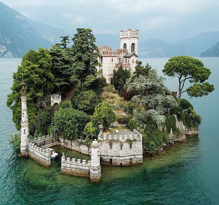 這是位於意大季北部的伊塞奧湖(Lake Iseo)當中一個最小最小的 Loreto Island。在十五世紀時(也有說是十四世紀)是一間修道院,現在則是一個被私人擁有的小島。之所以有名,因它的景致被譽為童話故事的仙島,島上濃濃綠意,共有兩座燈塔和一幢新歌德式的城堡建築在懸崖邊,伊塞奧湖湖水清澈水晶般湛藍,背景則是白皚皚的雪山,集所有夢幻元素於一身,怪不得被譽為是童話小島。據知,小島一直荒廢,保持着數百年前的模樣,直至 1910 年被一個名為 Vincenzo Richieri 買下及擁有,有錢都不能住。