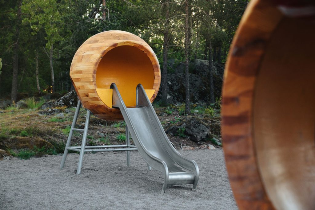 至於公園沙地的實木球體,則擔當小孩的玩樂供應家,搭配滑梯、長櫈、讓孩子可以盡情攀爬、玩耍。別小看實木的設計,外層用了亞麻仁油來處理,可以抵禦瑞典冬日的寒冷,滿足小孩一年四季都想玩樂的心。