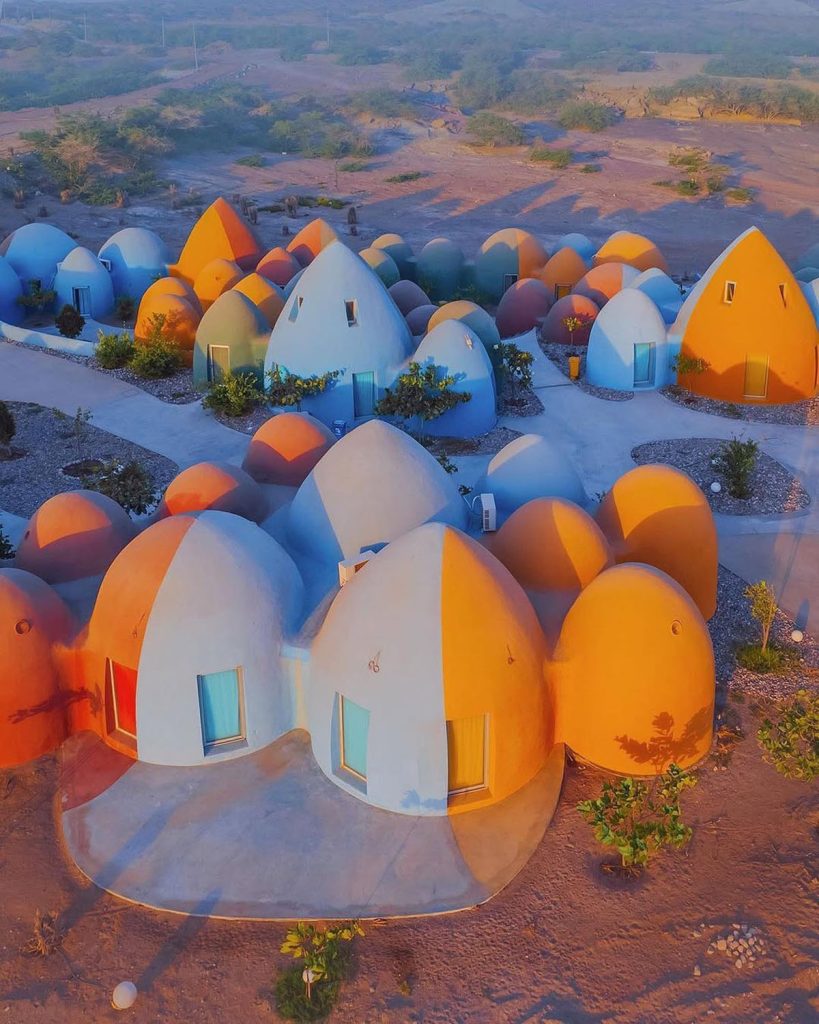 針對複雜現實和有限預算, ZAV 善用島上人力資源,建設一系列「以文化為基礎、社區為單位」的公共建設。團隊採用伊朗裔美國建築師 Nader Khalili 開創的「超級土坯Superadobe」建築法,教導島民就地收集彩虹色土壤礦物,將之裝進麻布袋、密封後交錯堆疊,再加入沙漿黏合紮實等工序,共同興建互相連結的幻彩穹頂土胚屋群。