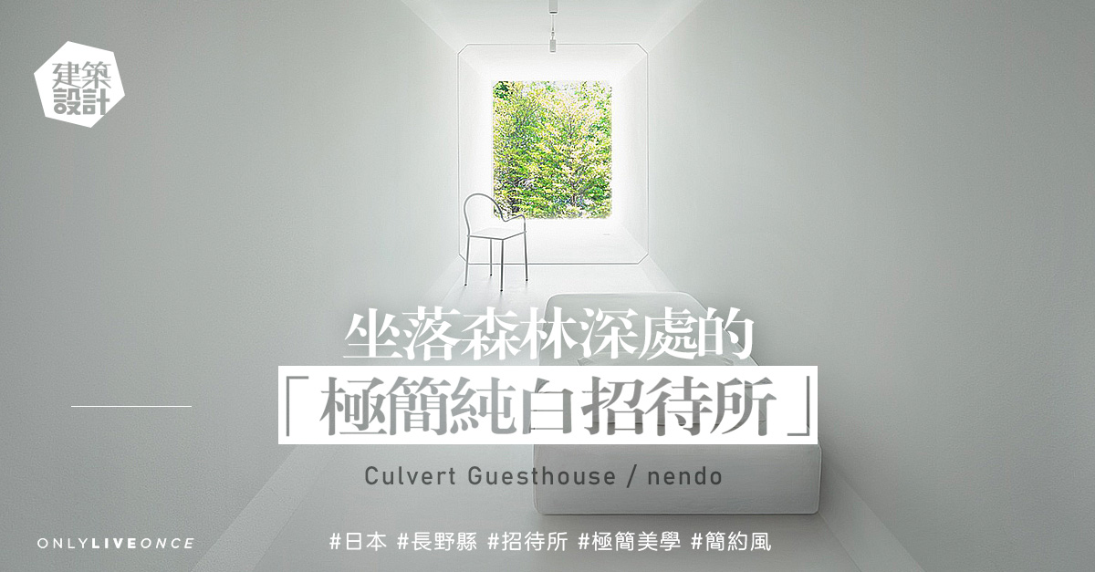 在日本長野縣宮田市的森林中,神秘地出現一座僅由四條長方形柱體打造而成的純白建築 —— Culvert Guesthouse 由知名日本設計師佐藤大創辦的設計團隊 Nendo 親自操刀,它既是一所招待所,亦是一個展示家具、藝術品的藝術住宅。建築由四個隧道及一個屋頂堆疊而成,每條 40 公尺長的隧道、以及隧道之間的間隙,都能被充分使用。招待所的一樓設有廚房、浴室、廁所等,而二樓則有臥室及書房,空間感十足。