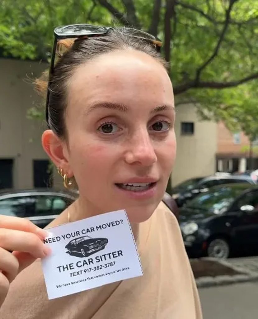 剛被裁員的 Sydney,帶着尚有年多租約無法退還的座駕,從德克薩斯州移居紐約後,面對「無業、養車及狠辣政策」三重壓力,深感煩惱之際,她發現有些人為佔據得來不易的停車位,不會事前將車移開,而是由本人或請親朋留守車內,等清掃車一到才暫時開走車子,待清潔完畢即趕緊駛回原位,隨即忽發其想——不如善用空閒時光,在 TikTok 推出「代客坐車」服務!