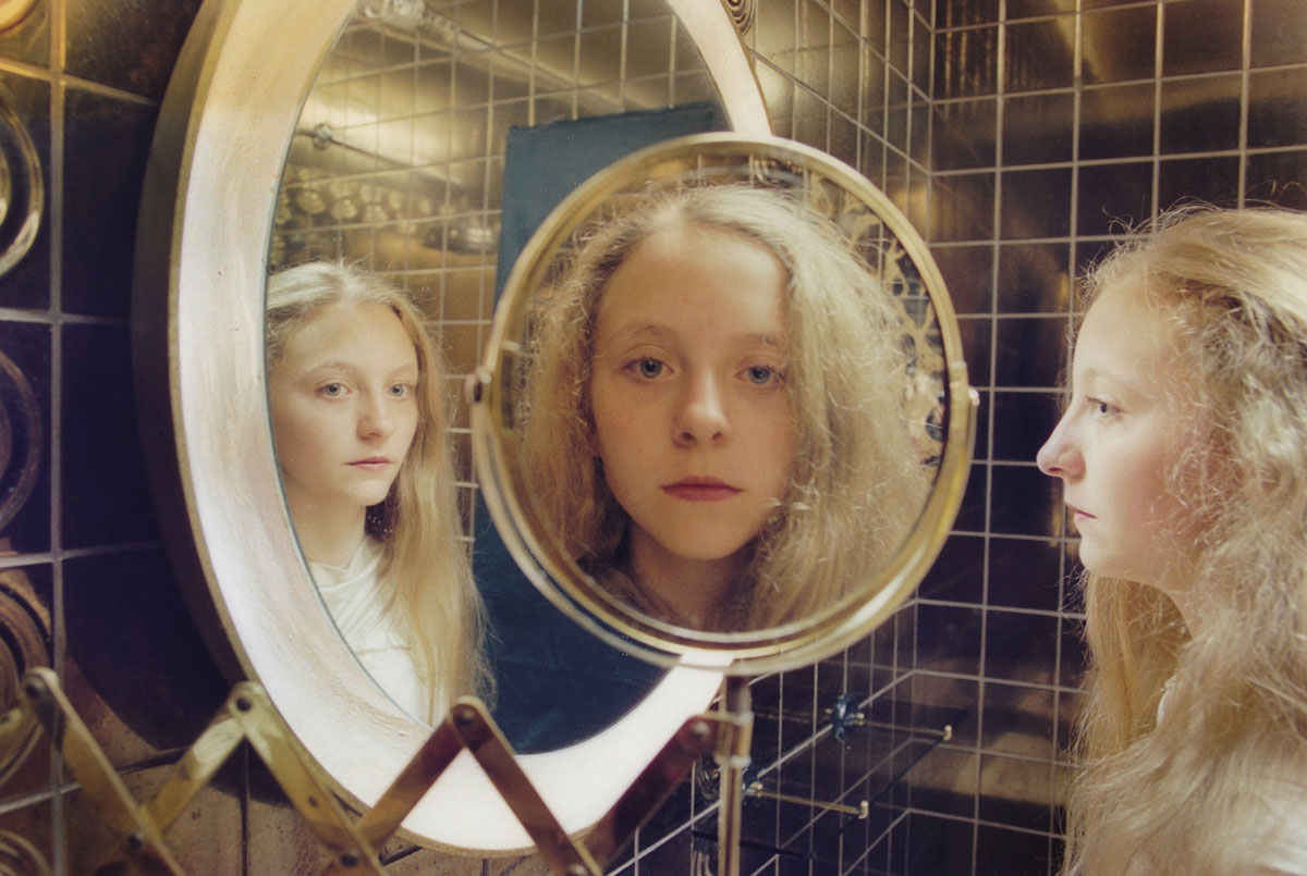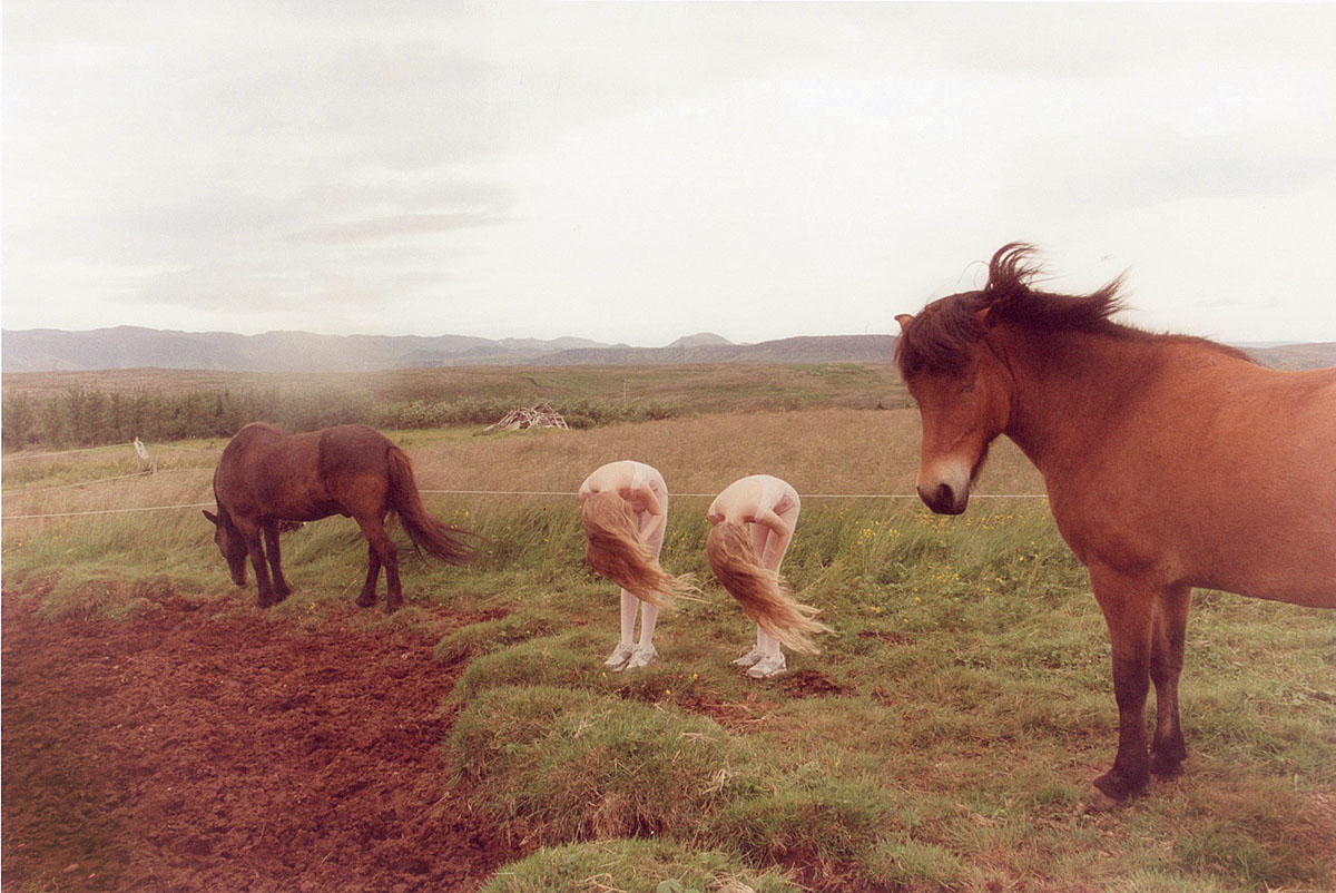 更玄妙的是,當時亞里子還偶遇了同卵雙胞胎 Erna 和 Hrefna,跟這對六歲女孩相處期間,她強烈感受到孿生兒微妙的心靈感應,某次聽到她倆提到曾於夜裡同作一夢,亞里子靈機一觸,想到從「雙子概念」出發,透過兩者並照,或借水面、鏡面互相映襯的構圖,展現「人」與他者、動物、自然以至宇宙星辰之間,互為鏡象和因果的寓意。