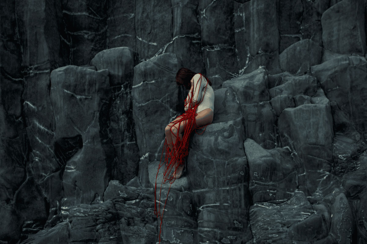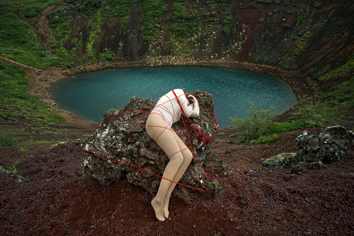 生病了,使人思考「自己」,哲學中所說的牽連到本我、現實中的我、理想中的我,而這個「我」有時堅強,有時懦弱;有時快樂,有時悲傷;或是,有時崇高,有時卑劣。人生充滿永恆的矛盾,因而探索自我既危險又有趣。Felicia Simion 在冰島的一輯《Rewired》是為治癒和探索自己,她將自己縛在大自然身上,將自己交給自然的風暴或雨水,比喻式的「連結」是真的想將自己跟世界重新連上。她在訪問中說:藝術使「我」成為信任者、懷疑者、勝利者、失敗者、戰鬥者、思想者、去發夢、去行動,更重要是成就了自己⋯⋯她自小期盼踏足冰島,想不到是在自己病了之際到訪,讓她眼中最獨特而罕見的地方和氣氛治癒自己。繩結交纏,直接綁在自然的石頭或地上,既是一種親密,也是解放。拍了這輯作品後,她說自己真的重生和活過來了。