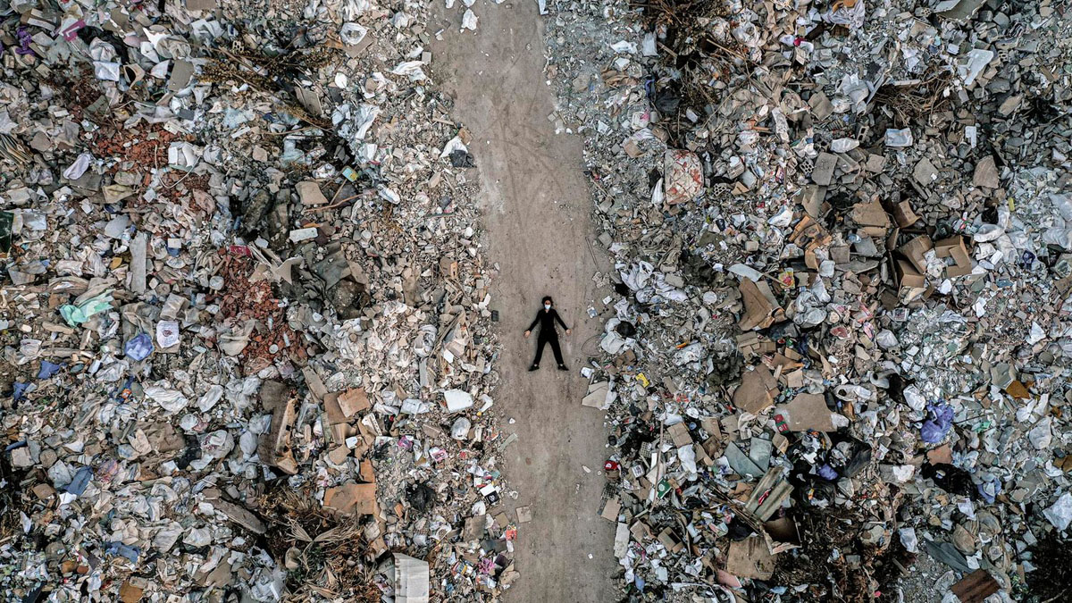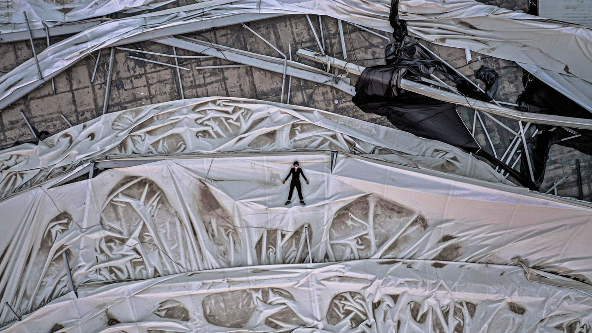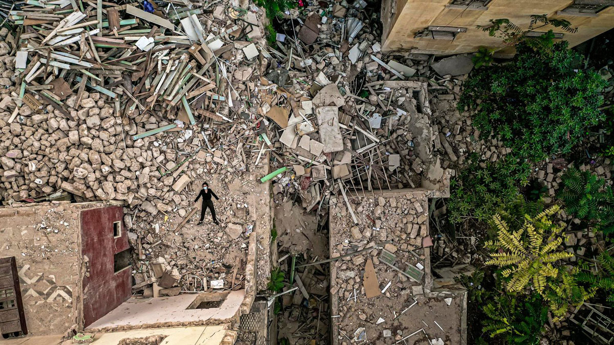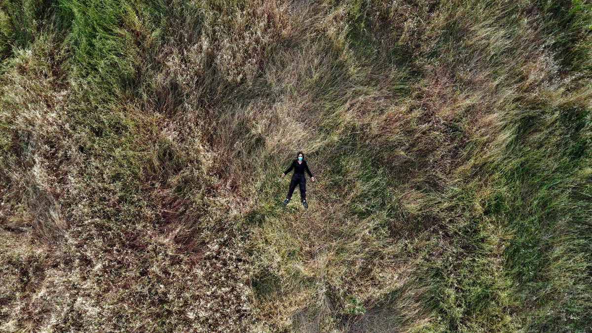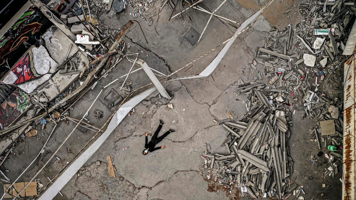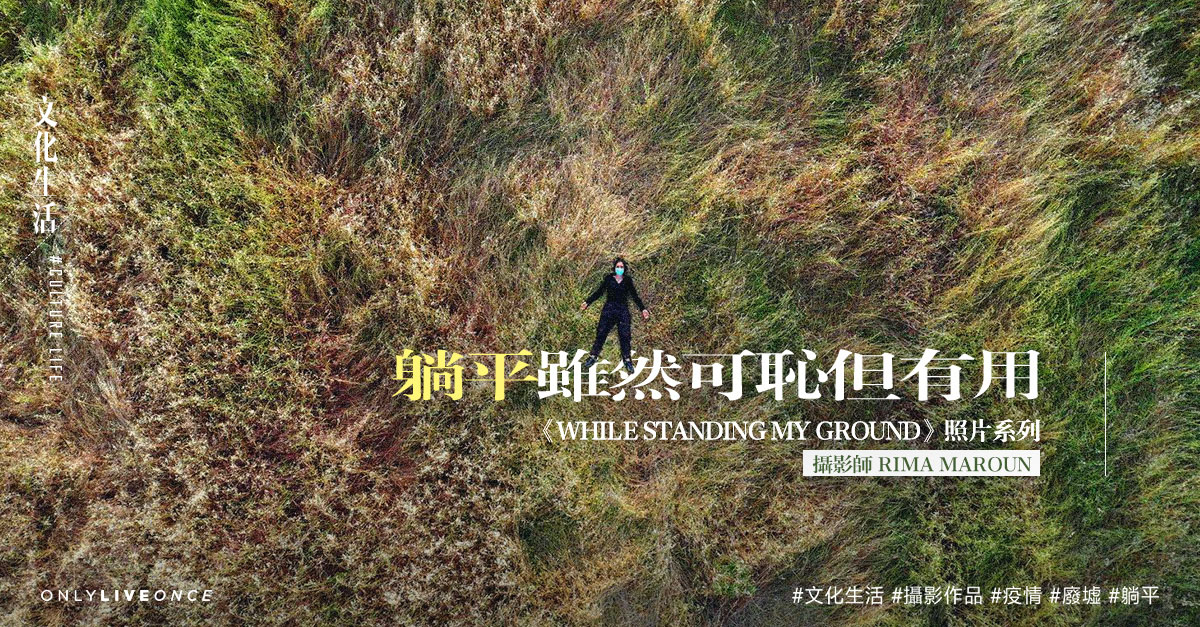 2020 年 8 月,貝魯特發生爆炸。Rima Maroun 嘆道:面對我們現在不得不面對的災難,Covid 似乎微不足道。之後,更要面臨經濟危機,200% 通貨膨脹率,城巿各處廢墟,道路的基礎設施一日一日衰敗⋯⋯但也喚起了攝影師的意念:只要能繼續呼吸,只要能躺在地上,無論我在哪裡,都需要與地球相連,便是《While Standing my Ground》的由來。照片以高空拍攝自己,躺在廢置的游泳池,躺在滿目瘡痍的廢墟,躺在防波堤,躺在大草地,要與地球連接,躺平雖然可恥但有用;只要自己一息尚存。