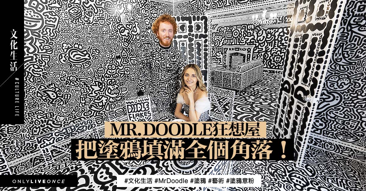 愛 Mr. Doodle 可以去到幾盡?著名英國 Pop Art 藝術家 Mr. Doodle(塗鴉先生),過去兩年在他坐擁 12 個房間的大宅,不停塗不停塗,直至把家裏每一吋都繪上他標誌性的黑白卡通塗鴉。最初由睡房開始畫,他興奮地說:「在這房間醒來時,讓我恍似感覺在天堂。」自此更是畫癮一發不可收拾,他把塗鴉延伸至樓梯、多間睡房、浴室中的浴缸,甚至廚房的爐頭也完全被顏料覆蓋,還竟以致它沒法再使用!