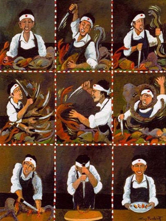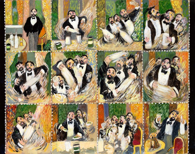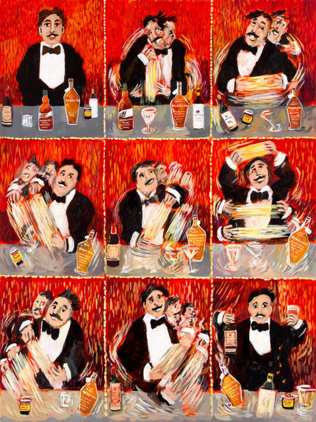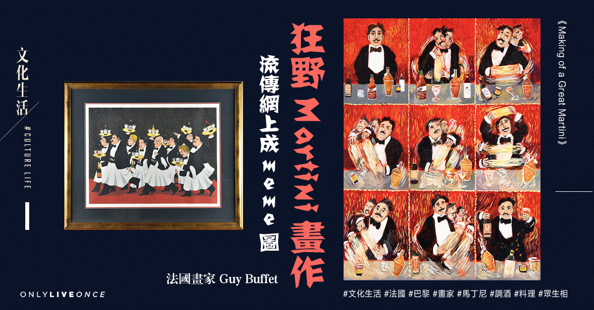追夢途上,人們常視「年少成名」為幸運,惟法國畫家 Guy Buffet 回看從餐飲業轉職藝術的歷程,倒覺得趁年輕吃些苦、碰點釘、多累積生活經驗,亦有迷路看風光的快意。他為人熟知的《Making of a Great Martini》系列畫作,那狂野的調酒畫面就啟發自昔日餐飲業的幽默見聞。