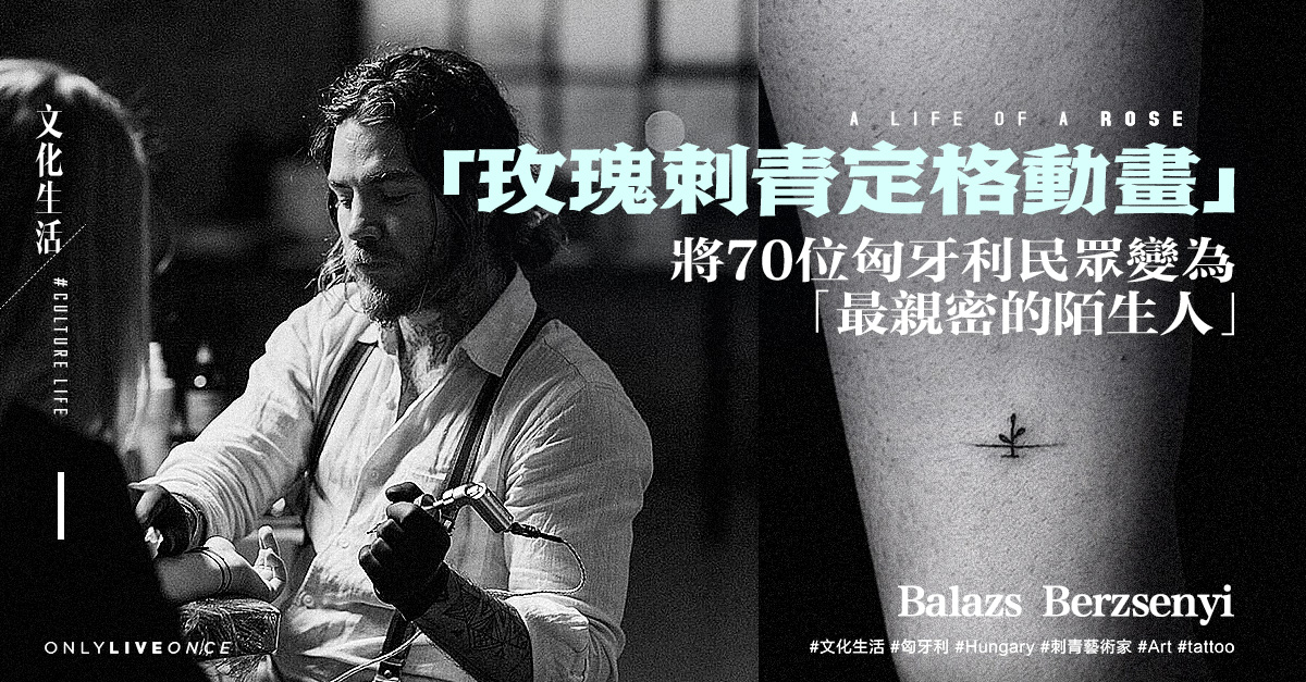「綻放有時,凋零有時」匈牙利刺青藝術家 Balazs Berzsenyi 長年為不同人繪製刺青、聆聽不同故事,深刻體會得到與失去之間,仍然尚存的每一刻,才是我們最該抓緊的部份。他還沿此構思一個「A Life of a Rose 刺青動畫計劃」,以玫瑰的生存週期為概念,邀請 70 位匈牙利志願者在身體紋上花朵枯榮的各階段模樣,再將之拍攝成照片以製作定格動畫,令流逝的分秒凝練成永恆的藝術。