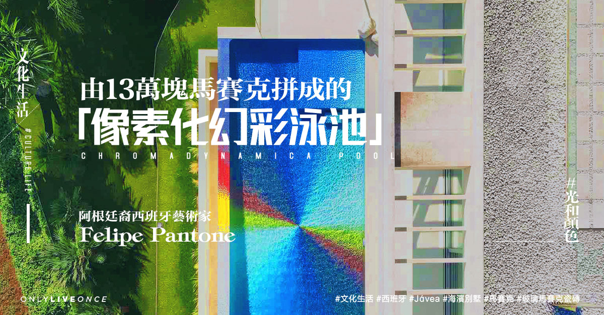 游泳池不只可供運動,由阿根廷裔西班牙藝術家 Felipe Pantone 以 13 萬塊玻璃馬賽克瓷磚拼砌的戶外泳池藝術品「Chromadynamica Pool」,更是探索「光和顏色」的實驗場。