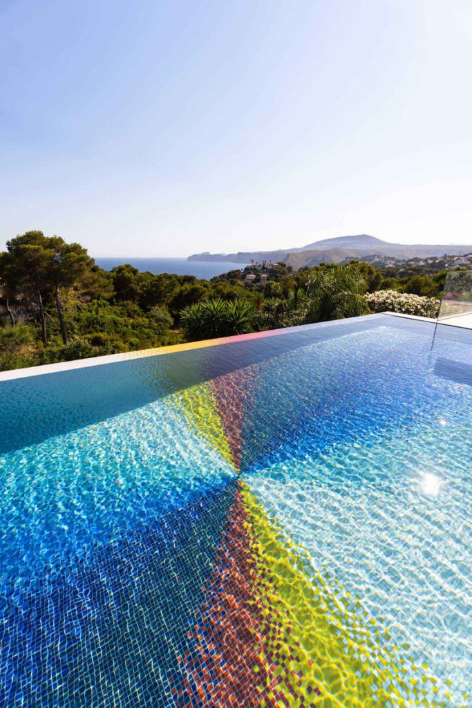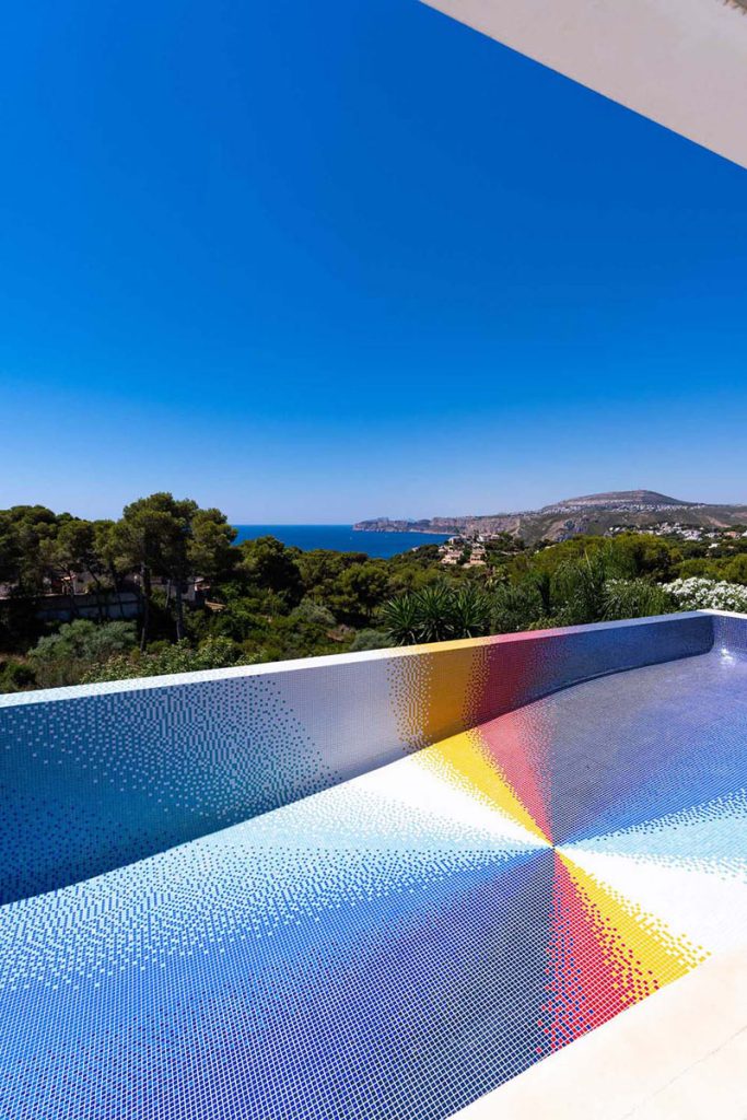 某次,Felipe 受連綿浮動的波光和池底的粒粒色磚,一動一靜迸發的無窮色調所感動:「顏色是光的結果,光是生命發生的唯一原因!」遂與磁磚製造商 ONIX 合作,於西班牙 Jávea 的海濱別墅創作 Chromadynamica Pool,參照歐洲常見的馬賽克(Mosaic)鑲嵌技法,採用廠家供應的 13 萬塊瓷磚,密鋪於矩形泳池來塑造像素化的彩虹視覺。