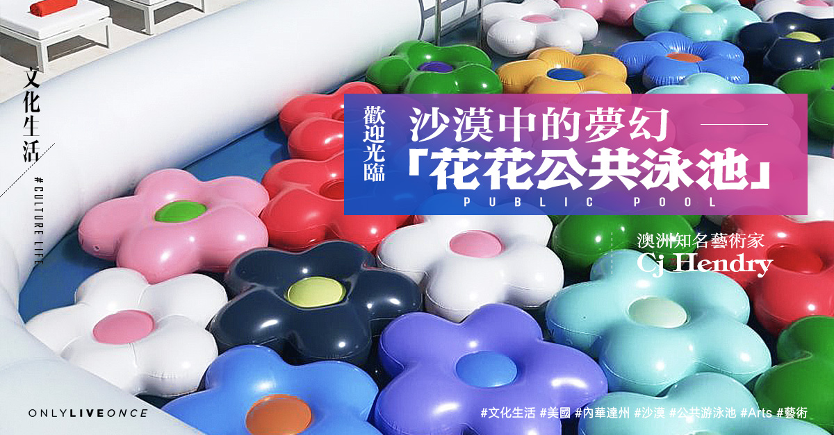 美國內華達州的沙漠區因酷熱乾旱,難以孕育花草也不宜居,長年氣氛蒼涼,惟經澳洲知名藝術家 Cj Hendry 妙用超現實技藝,建成一座可供群眾觀賞和暢泳的《Public Pool》藝術裝置後,荒漠亦畫風一轉成話題新去處。