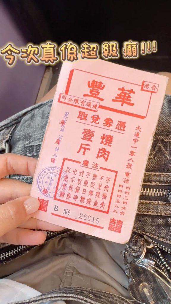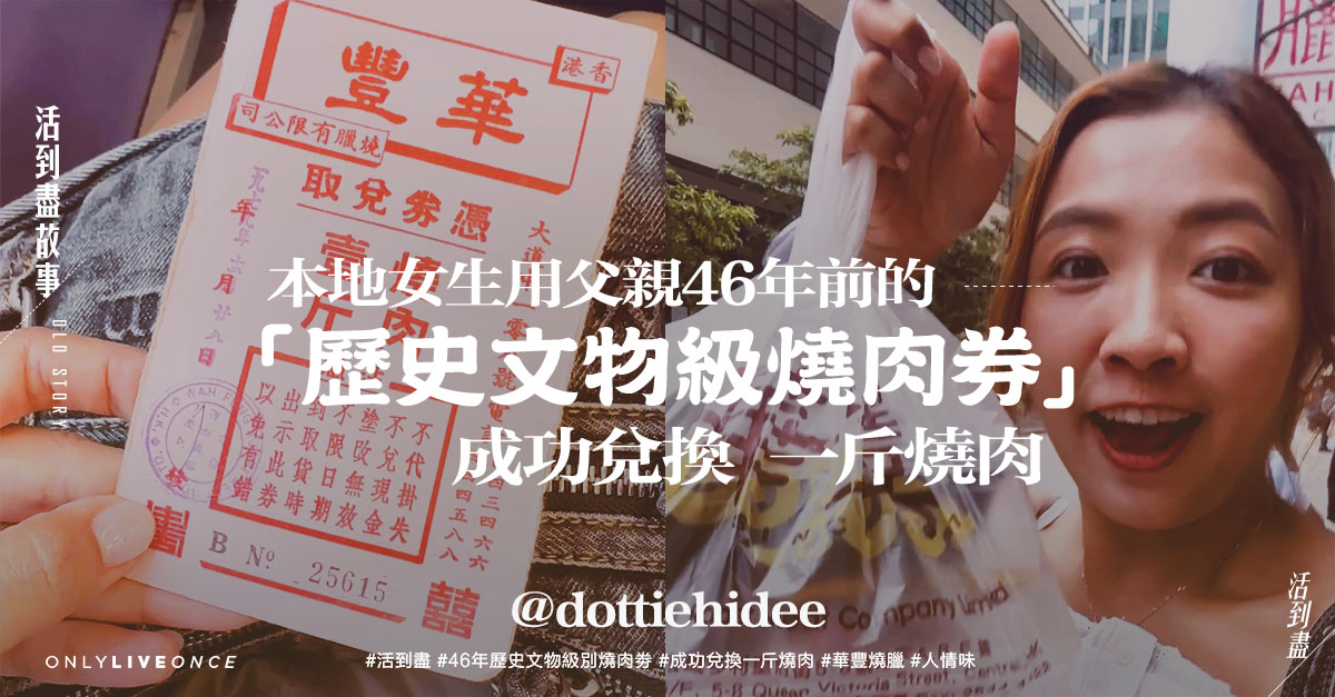最近本地女生 Hidee 在 Instagram 帳號「dottiehidee」發片,分享她受爸爸拜託用一張珍藏長達 46 年、近乎「歷史文物級別」的「華豐燒肉劵」,成功在今時今日跟仍然營運中的老店兌換到「一斤足秤的燒肉」,引發網民熱議和紛紛回家尋寶,看看家中有否也收藏了甚麼神奇禮券!