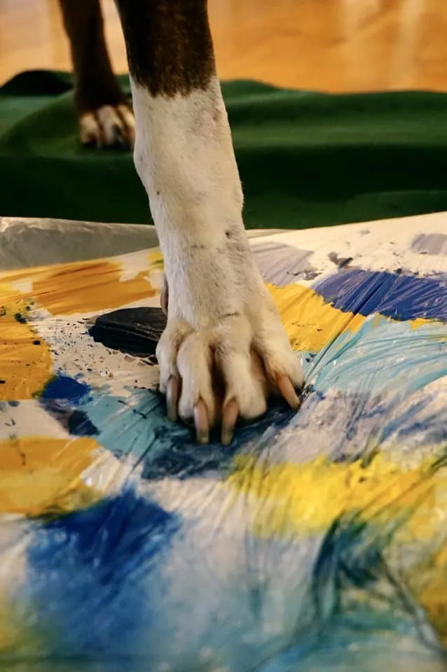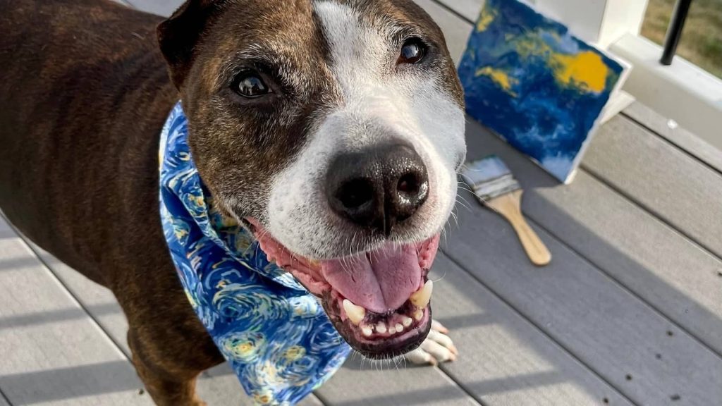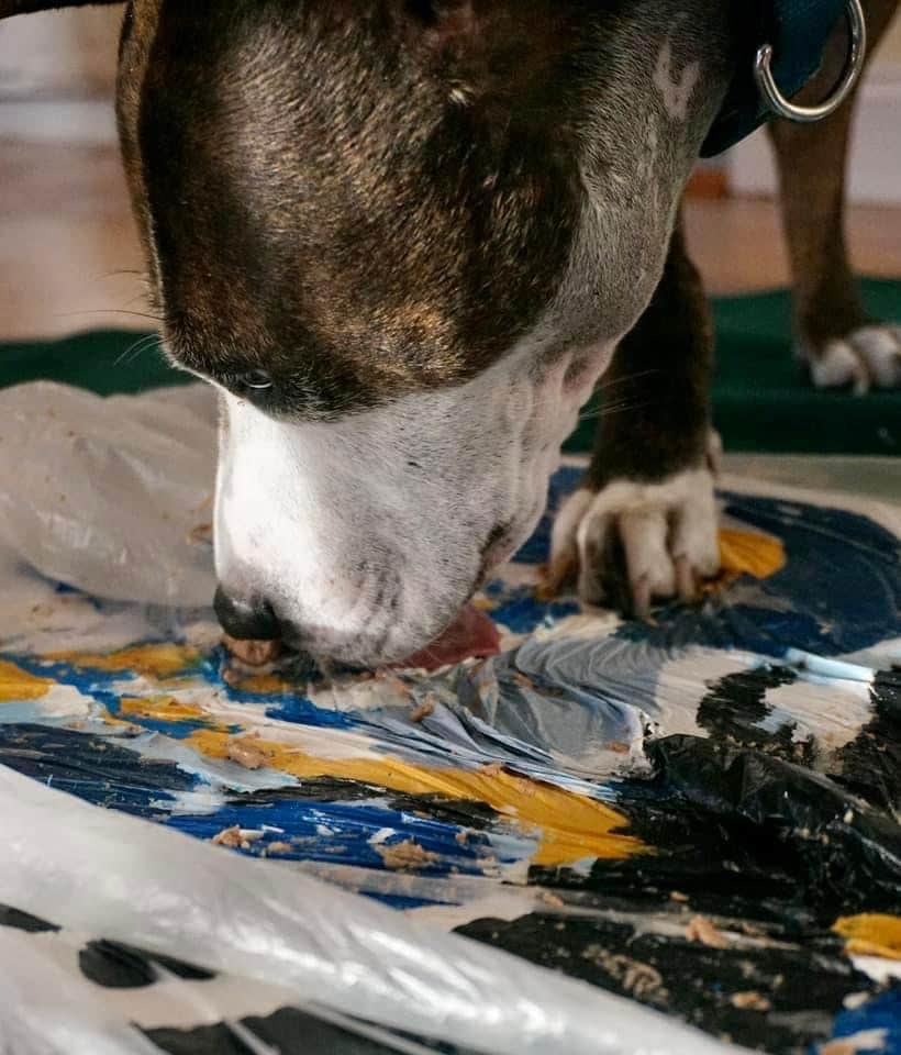 因梵高身有殘缺、年屆 7 歲,體型又龐大,較獲關注,Gartner 參考「畫家」概念,於畫板放上藍白黃等顏料及套入膠袋,再於袋上放置不含曬駱駝等人工甜味劑,避免狗隻中毒的無糖花生醬,引導梵高透過舔醬動作、推壓袋內顏料「繪畫」《星夜》的名作仿畫;更隆重其事為牠舉辦以「畫室」作主題的領養活動,即席揮毫及分享理念。