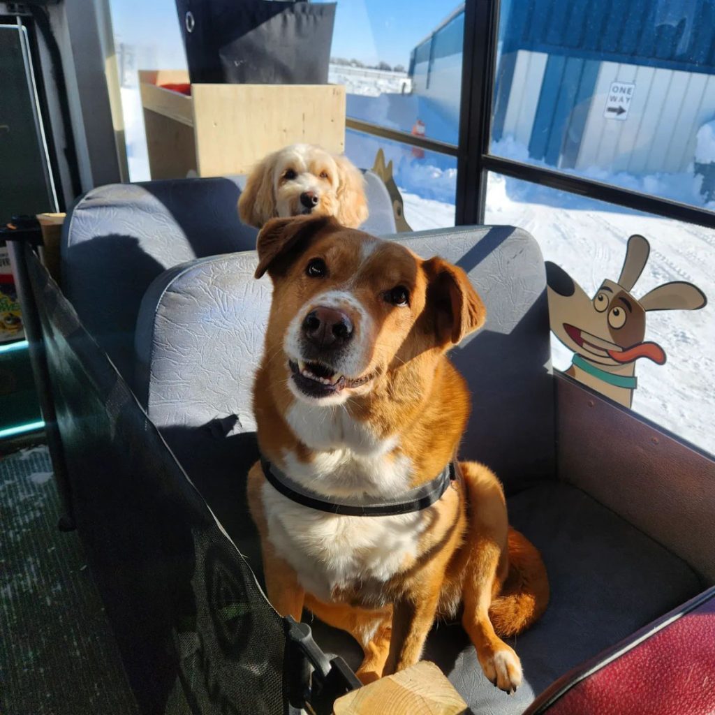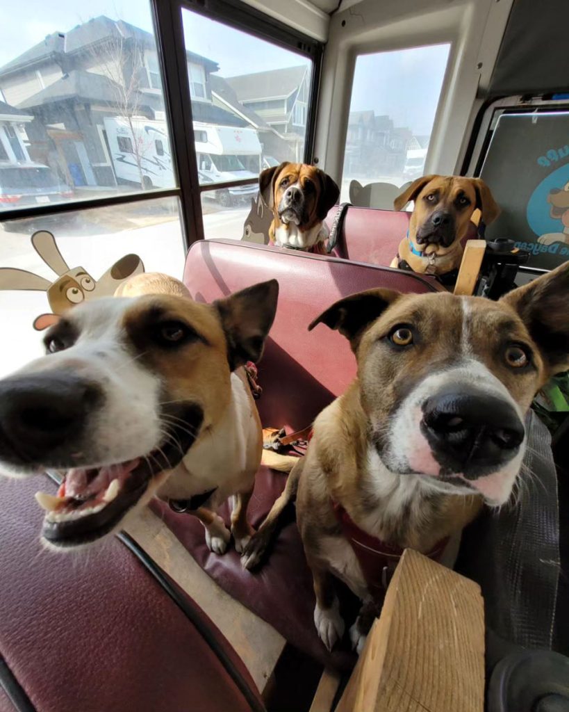 Denzel 專程改裝一架大校巴,天天直達家門接送狗狗。車上所有座椅均加裝了安全圍欄,每次志工都會為毛孩們戴好胸背帶、將扣環固定,遇緊張的狗狗亦會給予玩具作安撫等。或因安全感十足,狗狗總會蹦蹦跳衝上車,急不及待上學去。