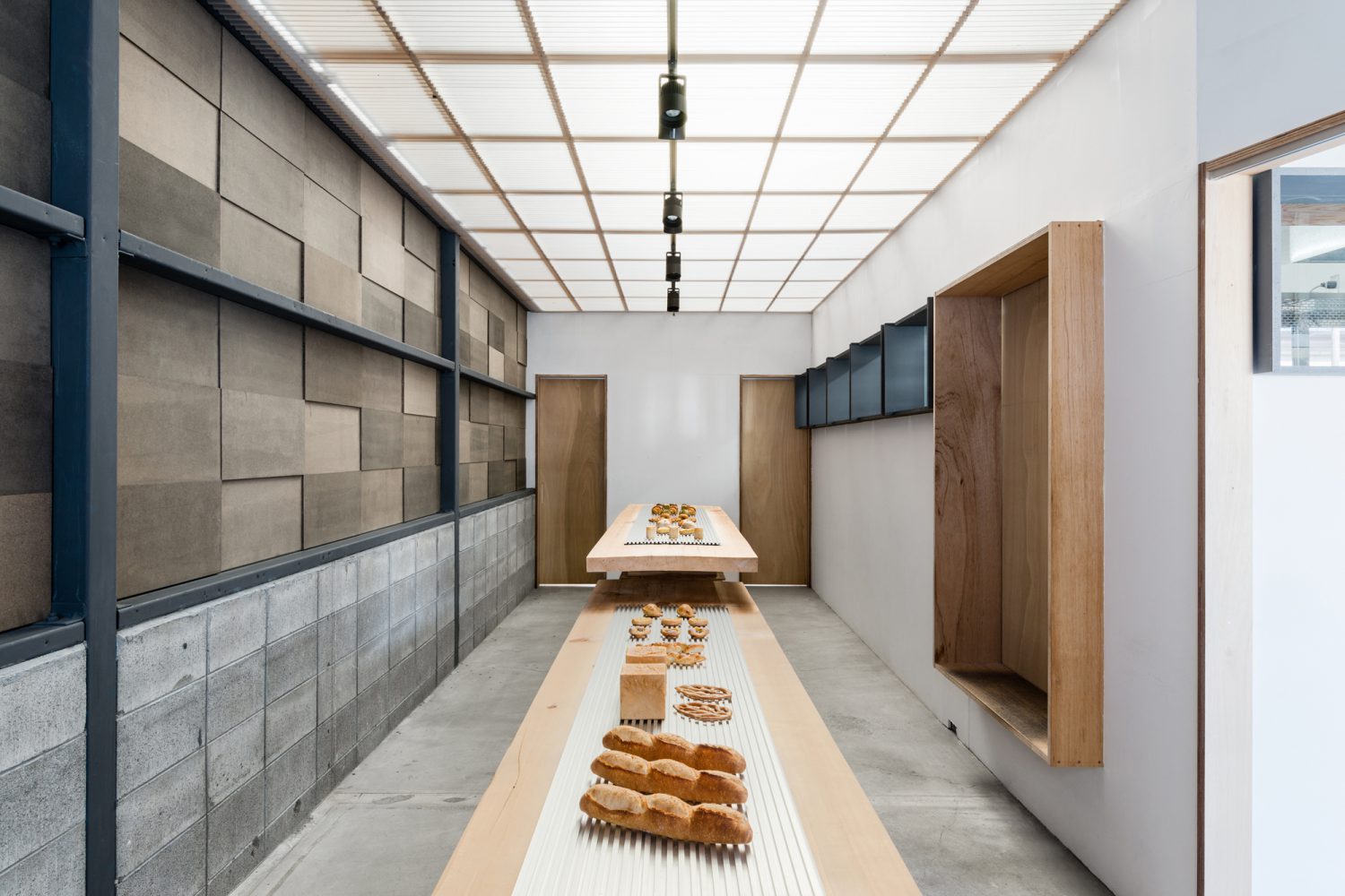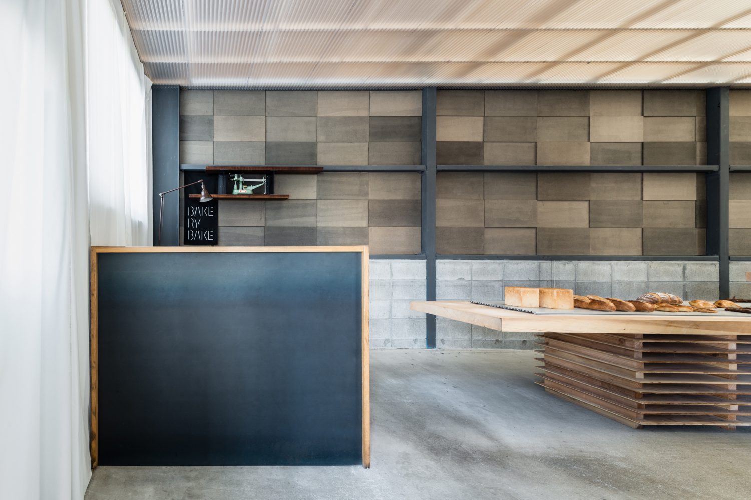 從外觀看,BAKERY BAKE 保留的鐵皮屋結構,似乎很平凡?但當訪客走近店舖,自然會嗅到陣陣撲鼻的烘焙香氣,忍不住動手推門而進,繼而發現另有乾坤——店內採用白牆、灰磚,搭配適度的淺色原木料建成,既顯乾淨俐落的工業風,又不失鮮明溫潤感。