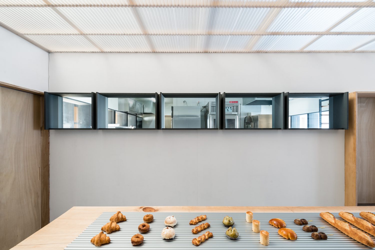 尤其中央放置的巨型長桌,將當日售賣的麵包款式,如藝術品般悉數陳列人前;烘焙廚房又設有玻璃窗櫥,透明化地展示麵包的製作流程。這不僅令顧客對產品一目了然,也能感受到麵包師將「食品」視為「作品」的用心。