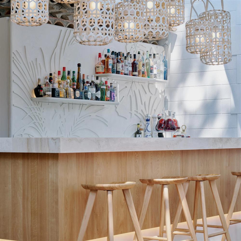 餐廳的空間,亦相當怡人。全店共設有約 40 個戶外座席,主要選用明亮的白色系及溫潤木材傢具,並以大量花草盆栽引入綠意,加上餐室內又滿是品牌經典印花的裝飾,連點綴空間的皮革燈籠,亦出自知名的 Objets Nomades 家具系列。當 LV 迷身處其中,吃着美點、吹着海風、聽着浪潮,必可飽嚐一頓五感盛宴,是絕佳的朝聖熱選。