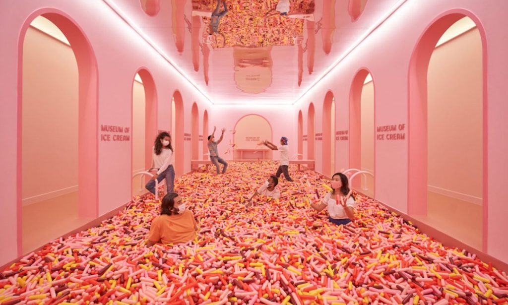 創意機構 The Working Assembly (WTA)就以「雪糕博物館」(Museum of Ice Cream)概念,先後於紐約、奧斯汀及新加坡開設「雪糕博物館」,希望以甜美的雪糕與糖果等甜點為媒介,將之特色融入建築與室內設計,刺激人們的五感體驗,創造愉快的情感記憶。尤其近年世界深陷疫情,人與人之間更見疏離,WTA 決定將甜美蔓延,進駐芝加哥開設另一所全新的「雪糕博物館」,加強沉浸式體驗和產品併入,並鼓勵人們透過時興的「網紅展」玩法——將個人體驗上傳社交平台,轉廣發成精彩圖文,引發集體共鳴。