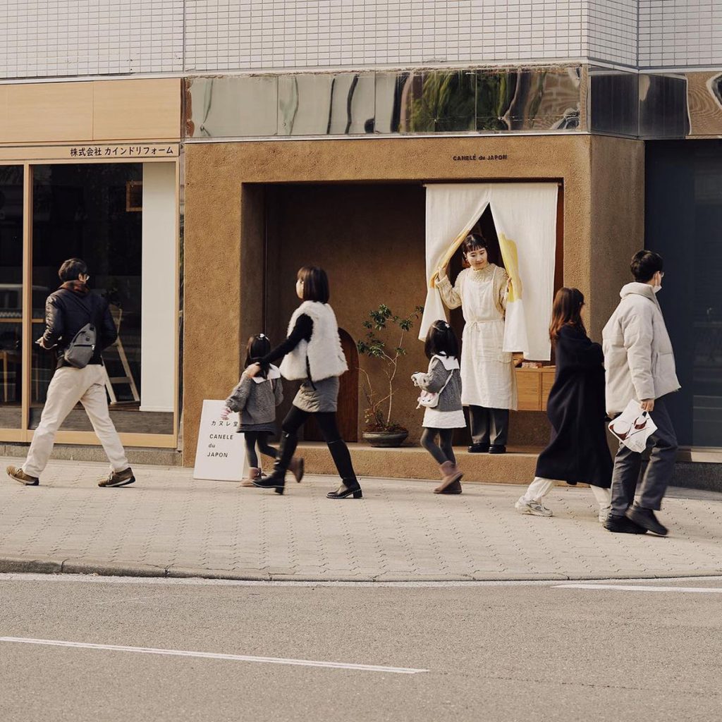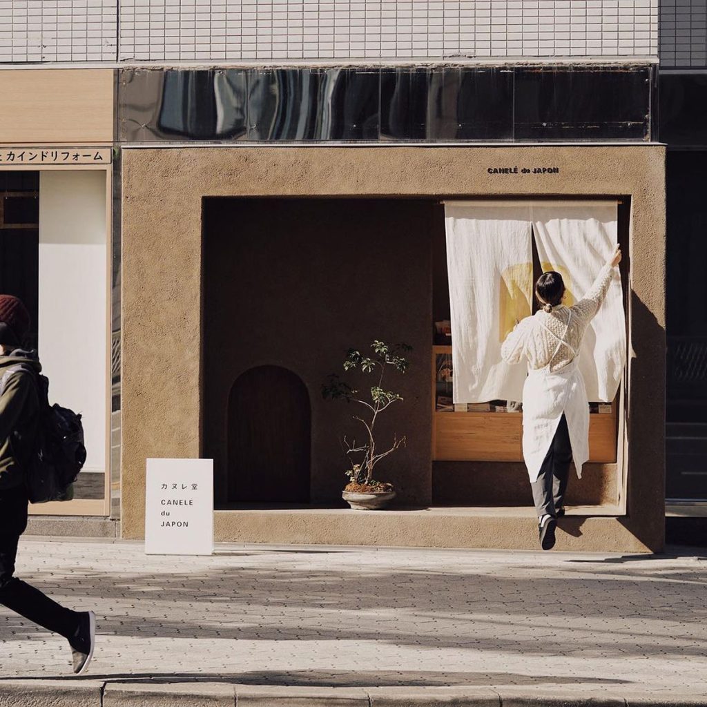 最新的大阪第四分店「CANELÉ du JAPON 谷町四丁目店」,秉承品牌一貫的建築風格和營運方針。因新店原址是彩券行,過去只販售彩券,室內僅約 10 平方公尺並屬狹長型,京都建築事務所 Koyori 改建時,針對烘培師製作甜品、店員銷售食品以及客人光顧的需要,作出了更妥善和舒適的動線規劃。