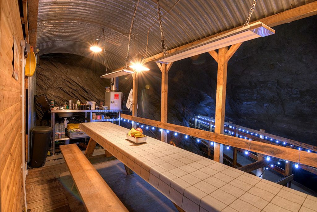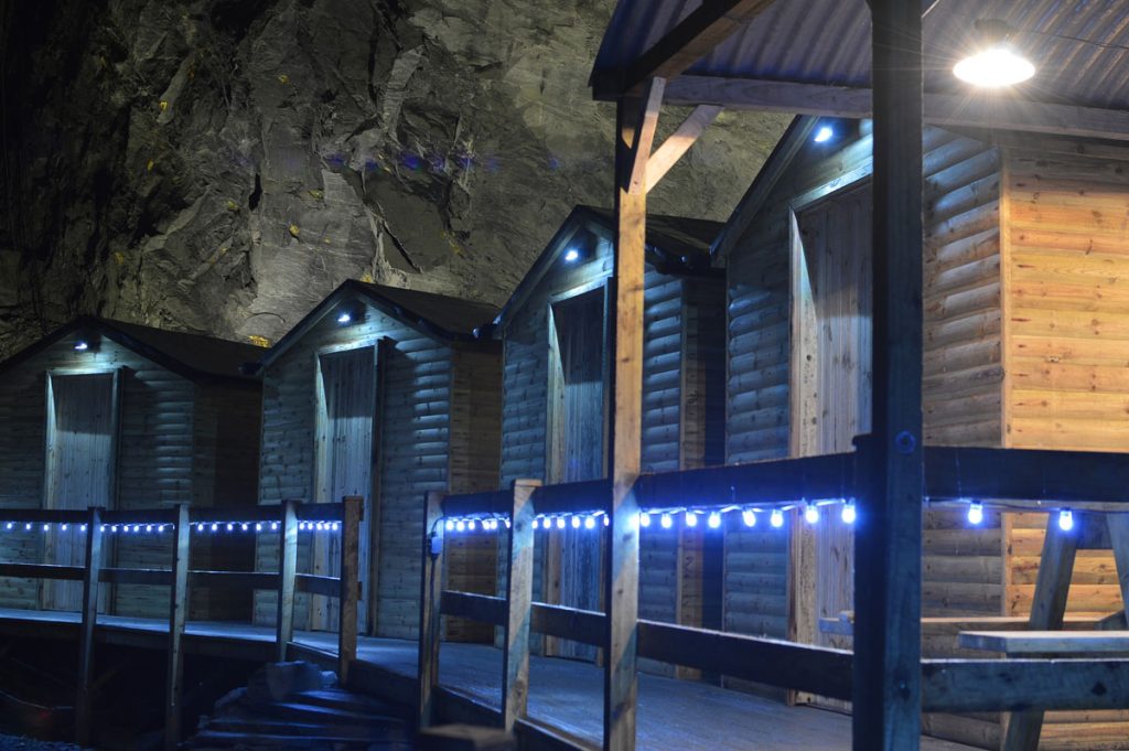 位於英國威爾斯斯諾登尼亞山脈的酒店(The Deep Sleep Hotel),處於地底下 419 米,號稱是全世界最深入地底的酒店。裏頭共有五間雙人房和一個餐室,廁所和浴室是共用的,一晚房費由英鎊 350 起。如果看圖片其實覺得有點詭異和陰森,也覺得有一點太簡陋了吧?沒有嚇你呢,如果要抵達客房,必先徒步 45 分鐘進入山區,繼而穿過一條陡峭而艱難的路線進入。過程中,要帶着頭盔、照明燈、安全帶和穿上爬山鞋,攀石、涉水、游繩,手足並用,起碼花上一兩個小時。那麼,出入酒店一來一回豈不要花四個小時?