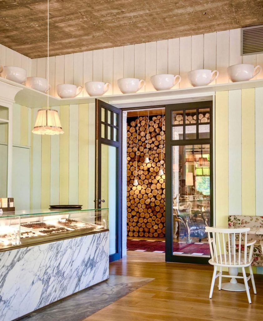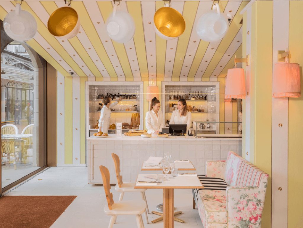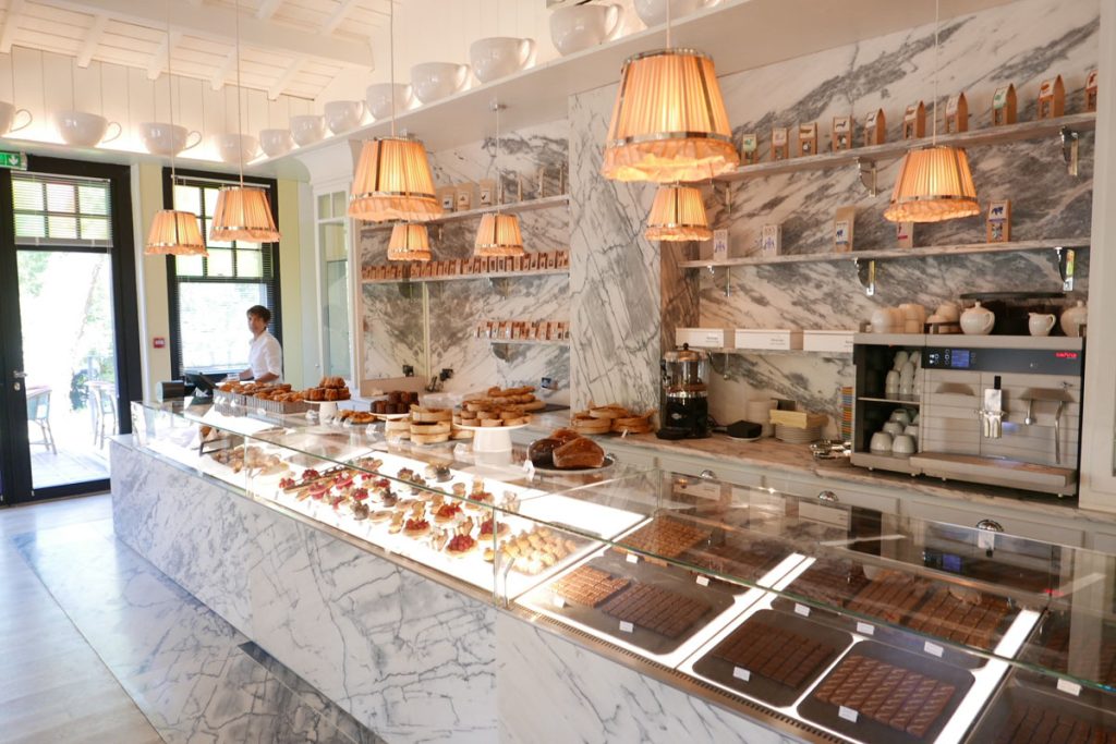 Philippe 因應糕餅店「由 Téchoueyres 家族主理」及「兼顧寰球訪客消費體驗」兩大方向,構思出具獨特性、精緻美,也不乏親和力的室內設計。店舖採用優雅的雲石、彩繪的木材和水泥色瓷磚為建材,搭配明亮的檸檬黃牆紙、花卉圖案布藝梳化,並陳設了富南法風情的木製家品、燈具、生活照和植物油畫,營造柔和溫馨的家居感,使訪客更安然地在此跟親朋至愛共享好時光。