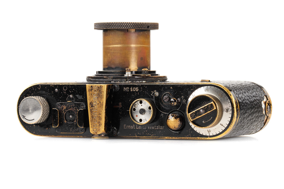 這部相機是 Leica 0 系列原型機(prototype),是公司最早期第一批投入生產的 35mm 相機,當年只有約 20 多部。最重要是,它是奠定日後相機標準規格的指標性相機,極具歷史收藏價值。另外,這部相機的前身擁有者正是被譽為 35mm 照相機發明家的 Oskar Barnack,他在 1911 年被光學工廠 Ernst Leitz 聘請擔任相機設計師,在 1912 年研究利用 35mm 菲林設計小型照相機,1913 年成功地造出第一部 24 × 36 毫米的原型徠卡相機(Ur-Leica),可說是 35 毫米相機的鼻祖。Leica 0 系列 105 的相機觀景窗上,特別刻印了他的名字。