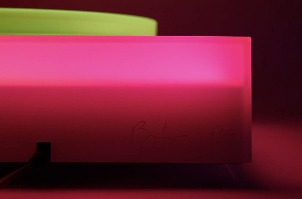 於黑膠熱再起之際,Eno 亦想以 TURNTABLE 啟發人們的五感體驗。TURNTABLE 不僅設計簡約、線條俐落、材質輕巧,其音色亦有絕妙,播放時機身更會隨樂章起伏,散發霓虹幻彩,予人從聲音中聽見色彩,從色彩中看見聲音的沉浸式視聽享受。當TURNTABLE 的消息於 Paul Stolper Gallery 官網發佈後,即時引起歐美黑膠迷所關注,急不及待想將之納入「購物心願清單」中。
