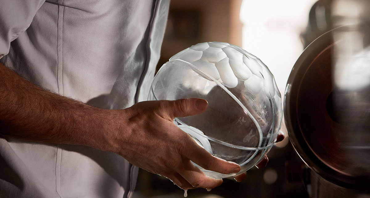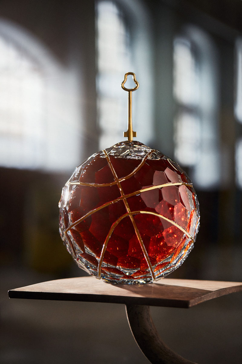 瓶中干邑,由第六代調合總藝師 Maurice Fillioux 以百年配方精心調配;至於酒瓶設計,則請來巴黎傳奇珠寶設計師 Lorenz Bäumer 主理,並有奢華水晶品牌 Baccarat 合作,兩者運用大師級的水晶吹製工藝,給 1.75 公升容量的瓶面雕琢出細膩有致、晶瑩剔透的刻面,從而突顯干邑的古銅酒色,並模擬籃球的形態及神緒。