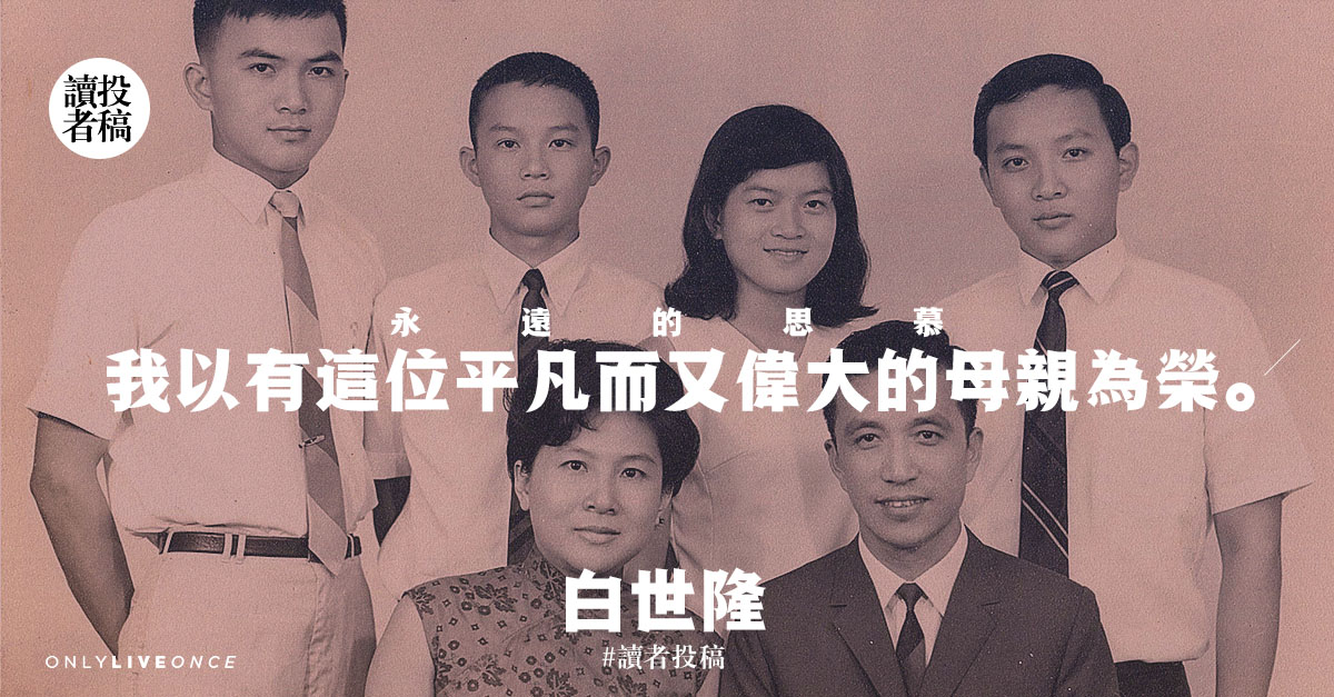 10年前我退休回國,那時候父親95歲,媽媽89歲。在那之前,媽媽已經獨自照顧爸爸10年。父親99歲,在臺北過世。我懵懵懂懂地過一生,做過最好的決定,可能就是提早退休回到臺灣,伴隨父親走完他人生的最後4年。父親在最後幾個月裡,因為大腦萎縮,失去食慾,進入安寧治療,沒受太多苦,安詳地離我們而去,享年98歲。今年母親節快到了,前2天我還和姐姐回顧,媽媽臨終前,我們姐弟4人討論是否要給醫生指示,做侵入型插管手段來延續媽媽的生命時,我們心裡和感情的煎熬,對比父親臨終的時候,除了悲傷之外,並沒太多心裡的煎熬或理智的選擇。因為當時已93歲的媽媽把這些痛苦的決定都一肩扛下,我們做子女的,在那過程中並沒想太多。現在回想起來,媽媽在那當時,為了讓子女們沒有心神上的負擔,她獨自承擔了有關父親生命的重大決定,在那性命交關的關頭,媽媽主動和醫生商討,之後就下了決定。那即將失去70年老伴的痛楚,媽媽自己默默地埋藏在心裡,要的就是子女們不要慌亂,不要不知所措,不要過度傷悲,就像我們做子女的每一個人,人生裡有任何重大的轉折點時,媽媽總是以無比的愛心和耐心,來提供建議和保護我們。