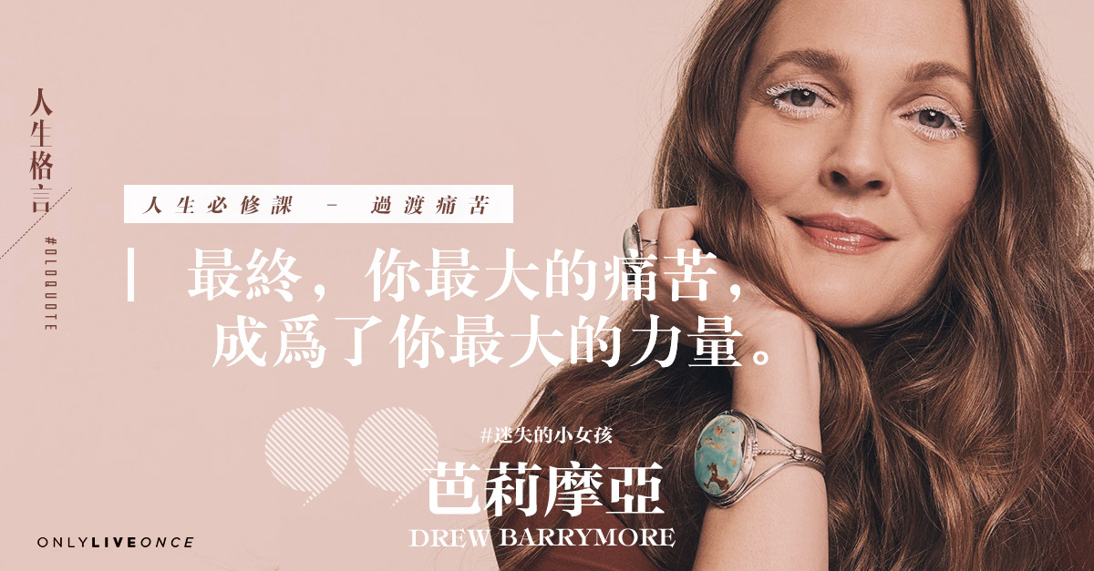 美國演員 Drew Barrymore 的痛苦與轉捩點在她 17 歲前已經上演得精彩。天生擁有美人胚子的她,11 個月大已經被安排出鏡,7 歲成為當紅童星,10 歲的她已被訓練出「成人姿態」,老練地出席各種公開場合。到後來染上毒癮不能自拔,家人決定送她去戒毒所時,都只是13歲。後來,她更企圖自殺。在大家眼中,她已經完了,她卻用了幾年時間扶起自己, 17歲時,她重返演藝圈,再沒有甚麼光環的她,由低做起。憑的是她一己的努力,才成就了今天我們眼前的多棲發展女主角。