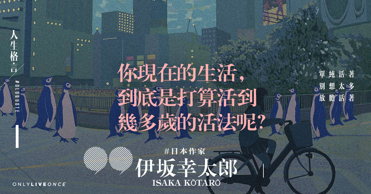 套一句伊坂很喜歡的筆下角色—優雅小偷黑澤的話:「我們既然難以和這世上那股巨大的潮流對抗,那就沒什麼好怕的,也不需要逃避。你我就只是單純活著。別想太多,放手放膽活著。」