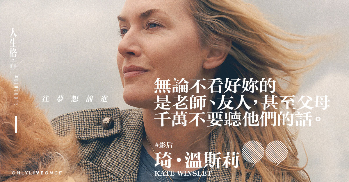 「我聽夠難受的人身攻擊!」Kate 醒覺信心不是外尋,而是建基於自我肯定。從此她改變心態,比起高矮肥瘦,更關注身心靈健康;比起走紅地毯是否性感撩人,更想活出戲中人的生命。遇有雜誌修圖過度,她還主動抗議,表明對體態深感自在,亦期望媒體改善風氣,別再苛求批判任何人的表相。「我想獻給任何曾被打擊的女生:無論不看好你的,是老師、友人,甚至父母,千萬不要聽他們的話!當年,我也沒有。你只需要深掘內心真正想做的事情,不必懷疑自己,大膽往夢想前進!」