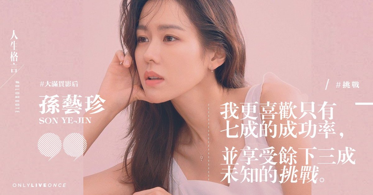 這可能是大部份人的心聲,而也許你我在成功之後,已不想再接受挑戰,只想享受努力過後的成果。也許孫藝珍真的算是少數,縱使已貴為韓國三大電影獎青龍獎、大鐘獎、百想藝術大賞的影后,仍很喜歡未知的刺激,奮鬥的心路歷程令她感覺活著,。