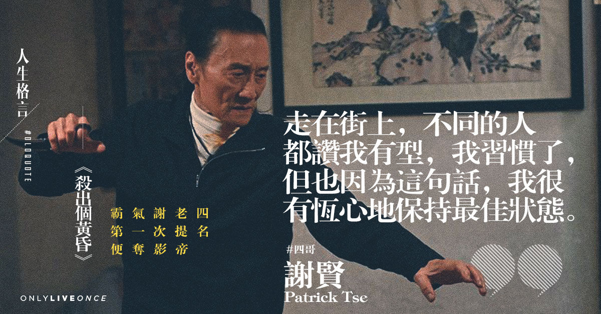 林家棟邀請四哥擔演《殺出個黃昏》,說是這個劇本已籌備多年,故事寫殺手遲暮,有誰比四哥更有說服力?於是膽粗粗作說客邀請四哥接拍,「我不要打爛四哥個招牌。」事實是四哥沒有很大架子,也不太計較,非常敬業樂業。他更希望一些新入行的工作人員看到,知道什麼是專業。