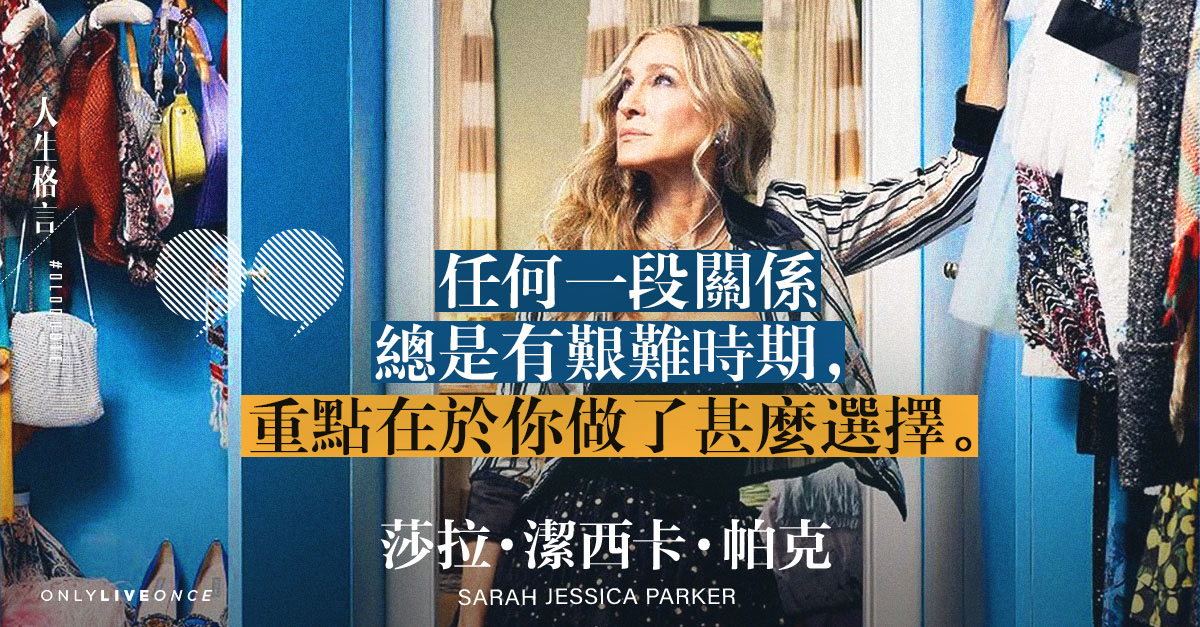面對眾多聲音,他們選擇緊握彼此。她說:「任何一段關係總是有艱難時期,重點在於你做了甚麼選擇。」無人完美,也沒有不用維繫的關係。但認清心中摯愛,選擇愛護與堅持,承諾成為彼此最堅強的後盾,又哪需害怕眼前的風高浪急。抓緊這些信念,Sarah 與丈夫至今結婚 24 年,依然甜蜜如初。