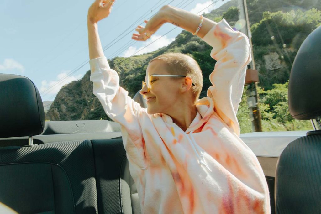 病魔沒辦法奪走她開朗的笑容,一頭清爽短髮的她,準備為觀眾演繹她的原創歌曲《It’s OK》。