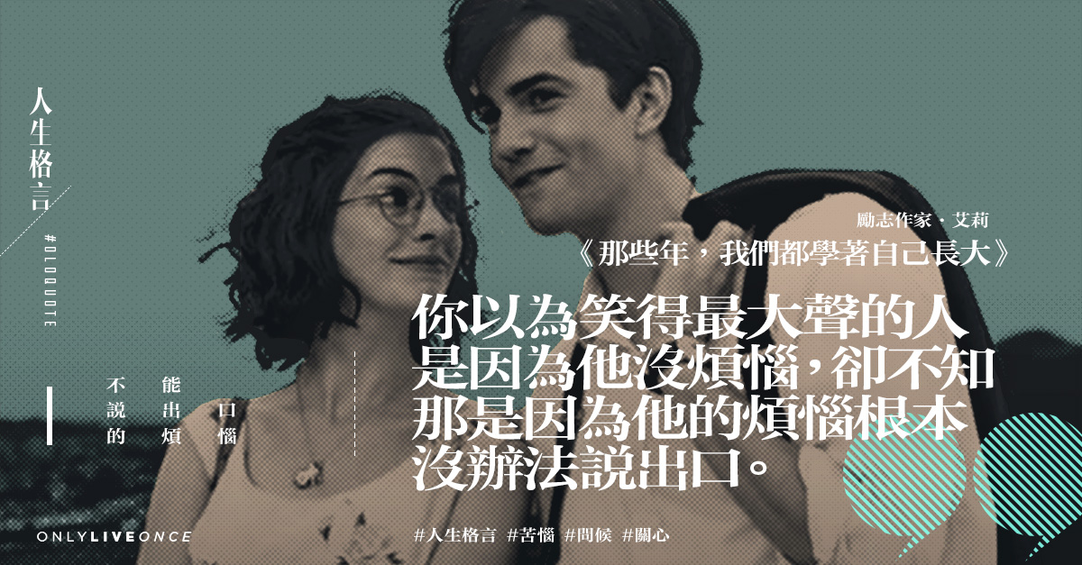 每次聚會,總有人看起來過得特別輕鬆,談笑風生說著自己的生活過得有多好,幾年後傳來友人破產、離婚甚至輕生的消息,往往當事人就是那個人。人到了一定年紀總背負著一些不為人道的苦惱和責任,只是有人會選擇愁眉苦臉過日子,有人則選擇隱瞞狀況繼續笑臉迎人。