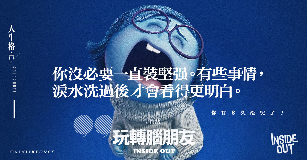 我們不是沒有了感情,只是把它們埋得很深很深,深得連自己也找不到。然後有天遇上某件大事,突然失控地崩潰式大哭,哭得不能停止,哭過後才發現自己沒想像中堅強,一切都是假裝出來,這一刻的你不再被外界左右,只想做回那個能隨意宣洩情緒的自己。哭,不代表脆弱;怒,不代表情緒化;笑,不代表易相處;憂;不代表愛放負。情緒沒有好壞,但一律都要表達出來,那是我們天生便擁有,最珍貴和真誠的本能。