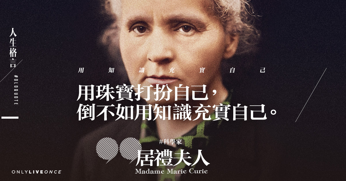 誰說家庭和事業,只能二選其一?首位諾貝爾化學獎女性得主、已故科學家瑪麗.居禮(又稱居禮夫人)就以「用珠寶打扮自己,倒不如用知識充實自我」的智慧,維繫兩者平衡。