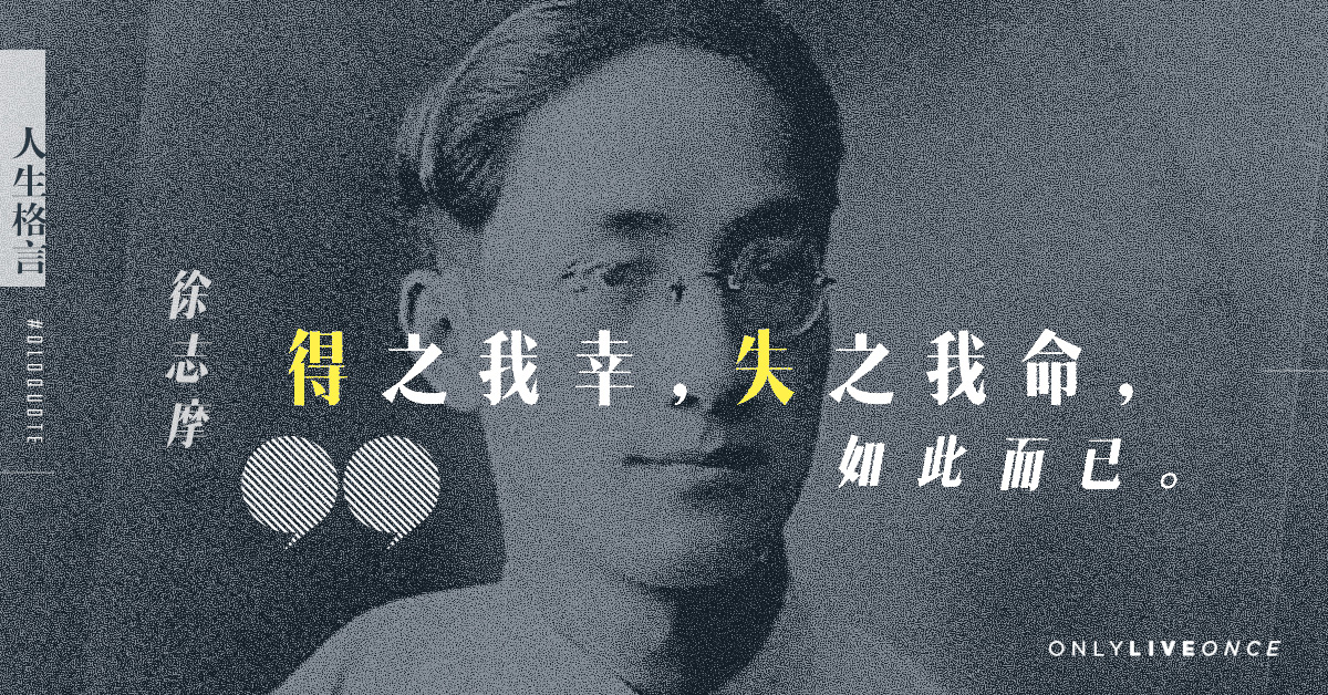 徐志摩一生情路坎坷,曾寫下「我將在茫茫人海中尋訪我唯一之靈魂伴侶。得之,我幸;不得,我命。」一句。為了追求心目中唯一的靈魂伴侶,他不顧當時社會的禮教,執意與當年在傳統婚姻安排下迎娶的髮妻離婚,並表示將會尋找生命中最珍貴的東西,如果得到了,那是我的榮幸,如果追求不到,也就是我的命運。大概我們都不能真正擁有任何東西,對於生命中所有獲得都應該欣喜,值得珍惜;然而就算失去,也只是順應命運的安排。不要沉溺痛苦,珍惜已經擁有之物,學習把得失看輕,或者生活會過得輕鬆一點。