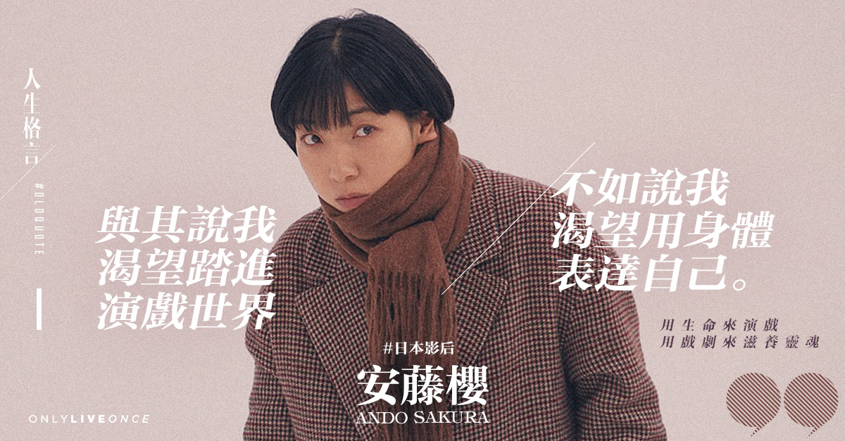 「與其說我渴望踏進演戲的世界,不如說我渴望用身體表達自己。」安藤櫻因孩堤觀看父親奧田瑛二的舞台劇,從此愛上表演,惟她自嘲天生單眼皮、小眼睛、扁鼻子,在美女如雲的演藝圈,乃屬醜女,「我也做到演員?別人會想是『靠爸族』吧?」不想被肆意否定,她堅持律己修心,年輕曾到餐廳打工汲取生活經驗,入行後也不說浮誇話搶風頭,只專注地思考戲劇、感受角色,活用自己的身體作容器,承載及詮釋不同人物的處境與情感。