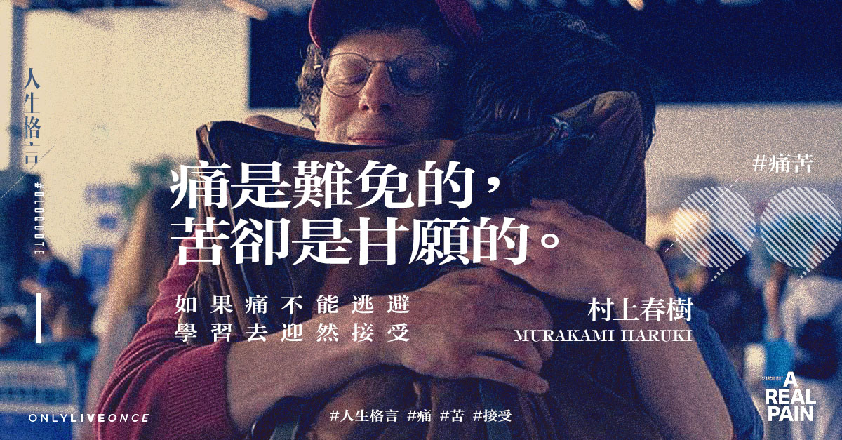 如果我們的人生中有種種不能逃避的痛,那至少可以學習去迎然接受,痛楚是難免的,但接受痛楚的程度是由自己所定斷。沒人可以為你定下你所能做到的界限,除了你自己。當你對某件事覺得「不行了」,覺得現在的自己做不到了,那才是你做不到的最大原因。
