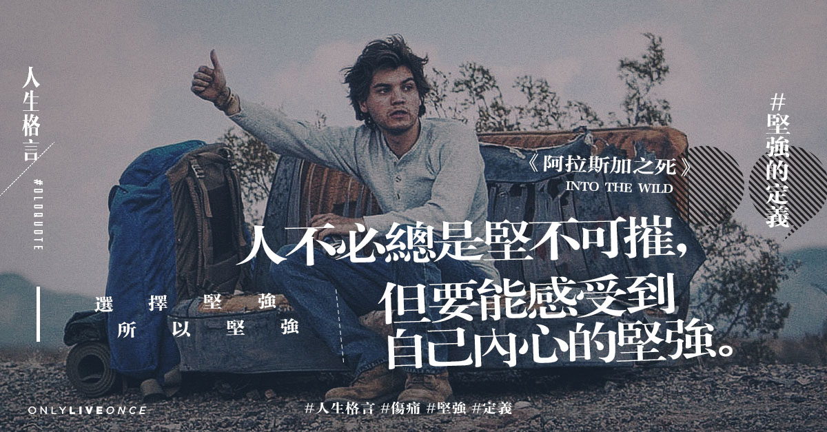 堅強不是你擁有無堅不摧的身體,能承受任何傷害,也不是能應付任何傷痛的心臟,而是即使我們自身再弱小,還是選擇去接受和積極面對。當我們面臨重大困難時,即使選擇放棄,選擇氣餒,好像也說得過去,畢竟受苦的是我們,但如果在問過十次:「為何是我?」後,找到一個能讓你接受的答案,然後努力面對,堅強的意志能感染身邊的人,或許是跟你同行給予你力量,又或是令他們更有勇氣去面對自己的困境。