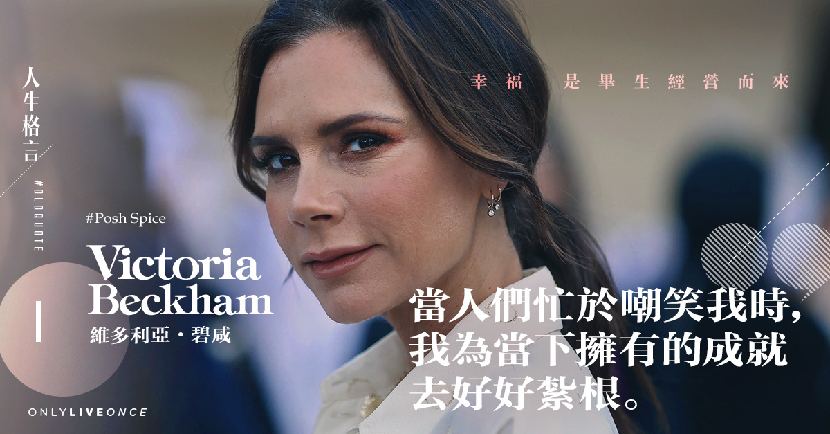 像 Victoria Beckham(簡稱 VB)的努力值得被正視。Netflix 紀錄片《碧咸傳》大熱,使知名球星碧咸及其妻 VB 重回公眾視野,但不曉得人們是否太仰慕男方?每當談 VB,群眾語氣都不免「酸味」,時而怪責她當年戀情影響碧咸作賽,時而調侃她是被寵慣的太太。紀錄片中,當 VB 提及出身藍領,但中途被碧咸反駁,引導其說出常坐勞斯萊斯上學的往事,就惹來花生網民熱炒她是千金小姐等 meme 梗圖,態度不無諷刺。