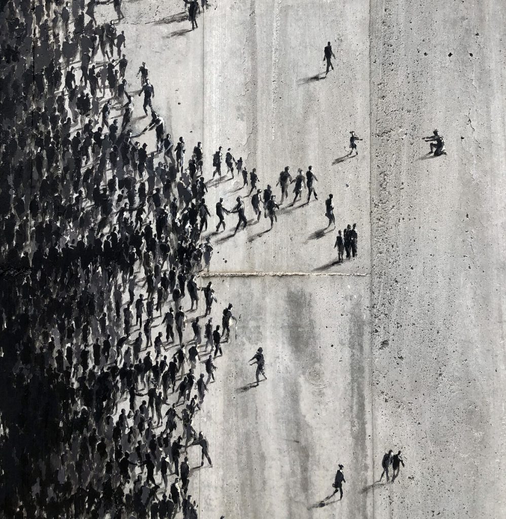 2020 年,Peja 又受疫情啟發,於華爾德席拉侯爵大學醫院牆上以油漆痕跡,創作了《Social Distancing》、《Caress》和《Overcoming》壁畫;今年跟馬德里新興藝廊 VETA 合作《Everything is Relative》,在牆上繪製微小人群齊心協力搬動碎片,願可喚起大眾再思疫境中人際,包容互助的群體精神。