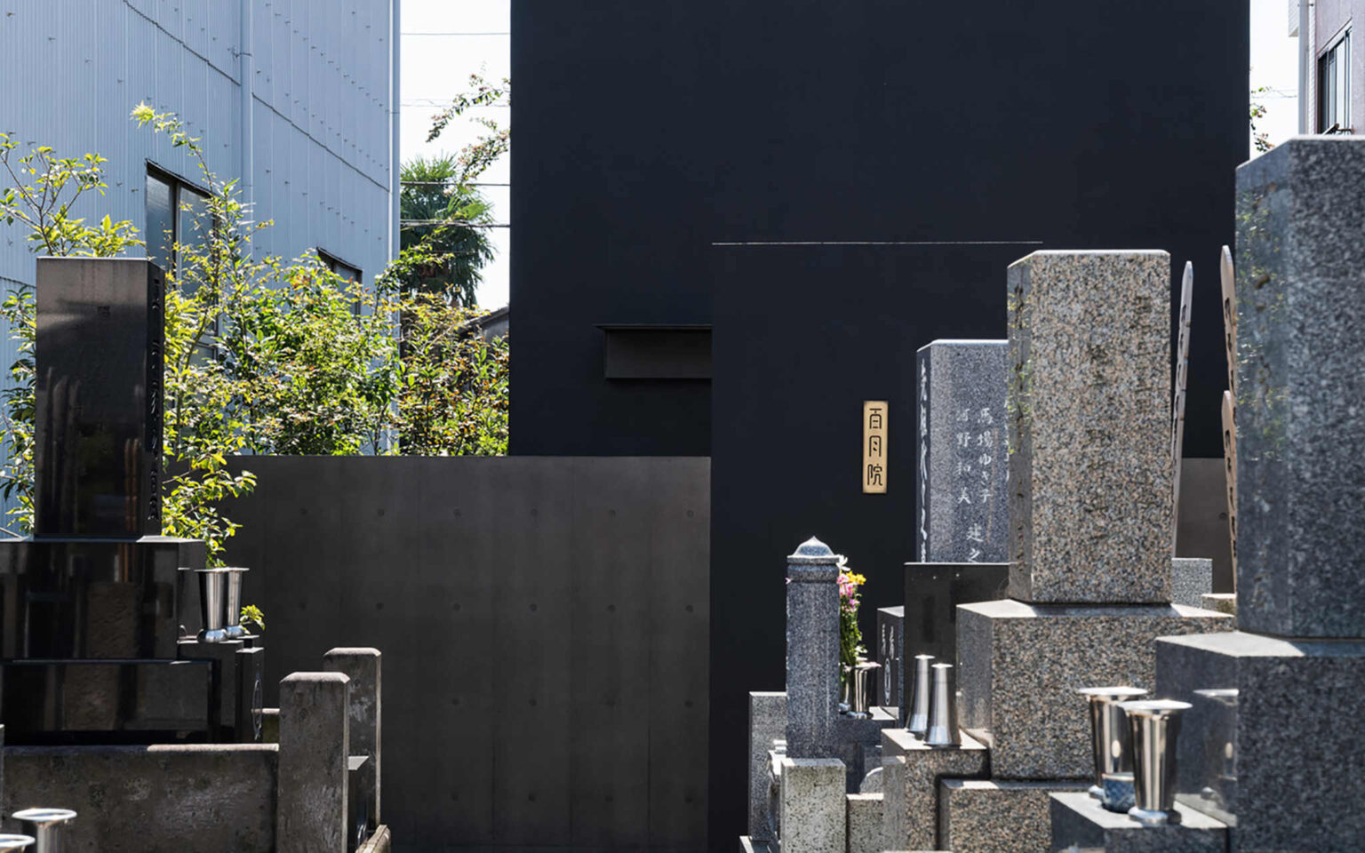 「秀明寺 百月院」的設計亦具靈氣。建築團隊按照年輕世代的祭祀及美感需求,主要採用簡約風格進行建設,例如主建築物用上深色外觀,出入口則擺放了巨大的石塊,任由攀藤植物沿牆壁往上生,展現墳墓的自然景觀,使其即使立於泥水色樓民房之間,也不顯突兀,又易於被辨認,流露當代墓園的恬靜美。