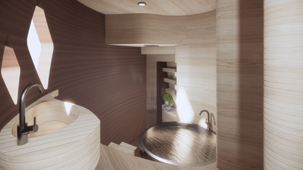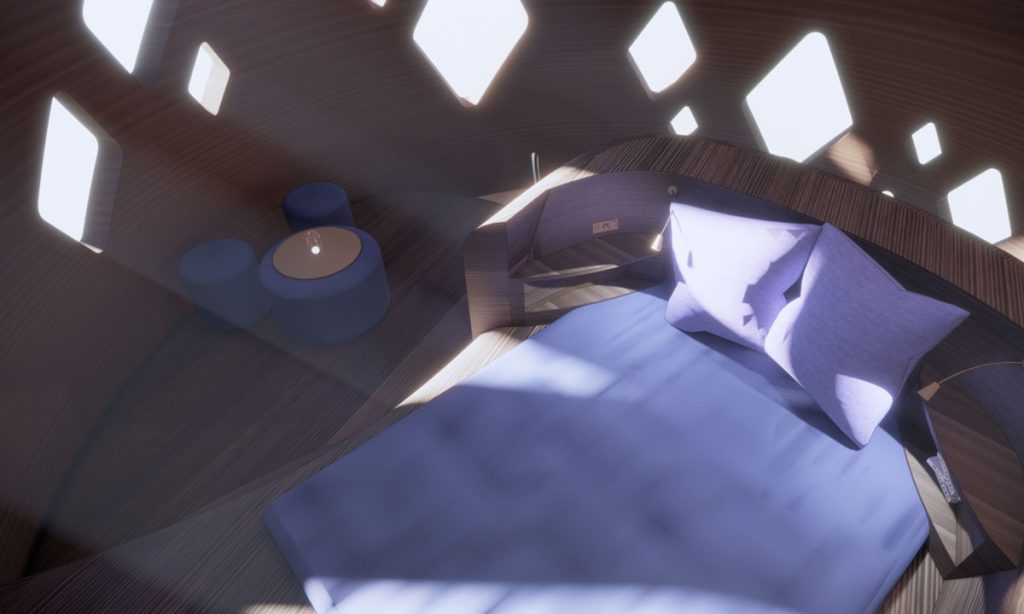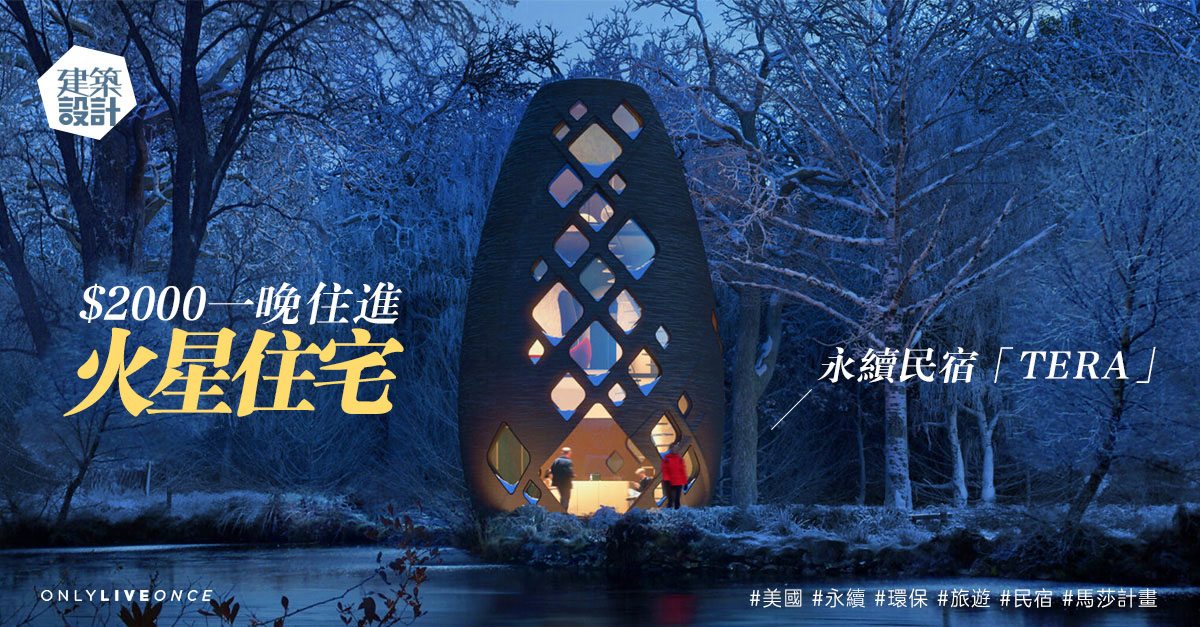 有見氣候變化日益嚴峻,執行長 David Malott 及首席設計師 Sima Shahverdi 將以現處紐約州哈德遜河畔的 TERA 為試點,沿用火星住宅的方式進行建造,教育人類反思現有生活方式。外形如同「貝殼」的 TERA 採用 3D 列印配合可被生物分解的植物作為建材,材質強度是混凝土的三倍,有助減低對周邊環境的傷害,而且整座 TERA 日後若需拆卸,亦可徹底回收。至於旅館內的設備,不但可滿足基本起居及娛樂需要,當中物料亦強調環保及節省能量,例如引進日光、以較省電的 LED 燈照明及地熱系統調節溫度等,鼓勵旅人體驗自給自足的旅程。