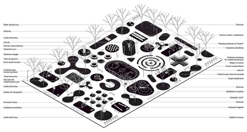 就在波蘭霍茹夫西里西亞大學(University of Silesia)與跨學科研究中心之間,有一片被老樹包圍的軍事廢墟。大學與波蘭設計公司 SLAS Architekci 合作,將廢墟活化,期望將一直封閉的軍事空間重新開放,變成與民同樂的土地。