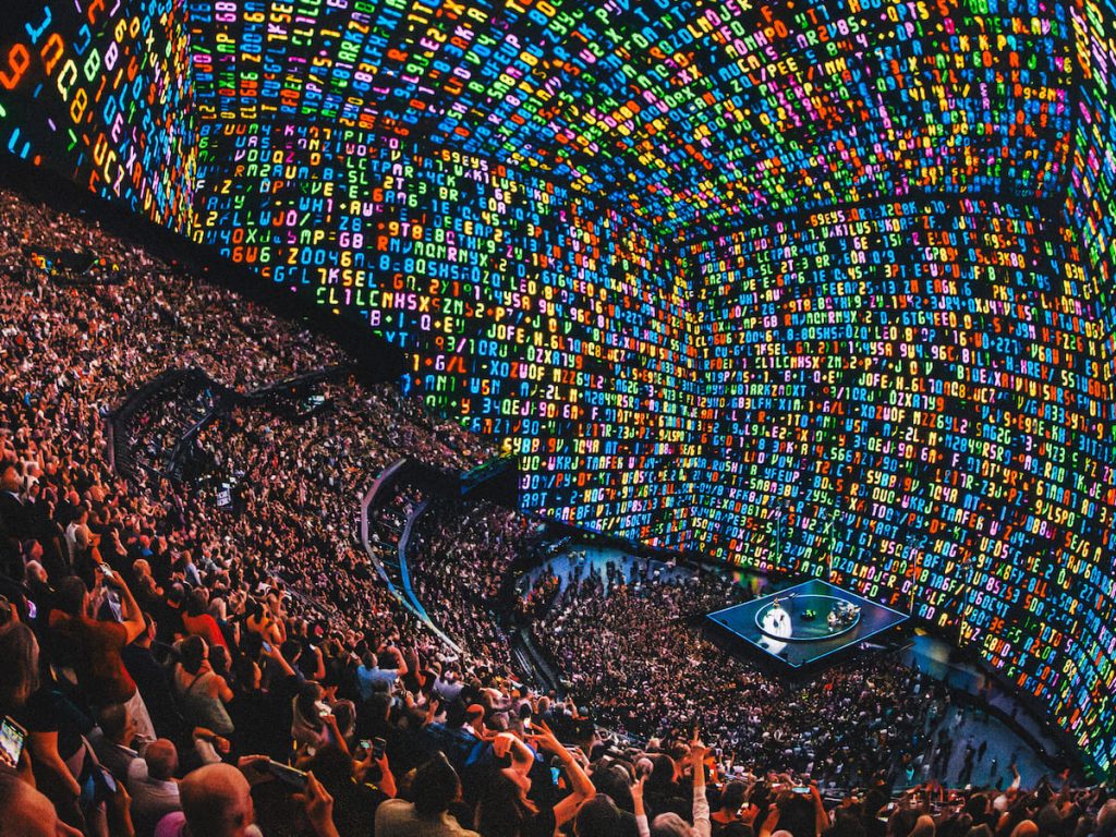 經歷融資和技術實驗之難,以及疫情爆發使成本飆升至 23 億美元,Sphere 終於建成。其總面積高約 366 英尺、寬約 516 英尺,白晝時,形同隱身賭城的巨型幽浮;黑夜中,則會發出閃爍幻光,宛如降落賭城的神秘星雲。走進場館,設備同樣恢宏,場內擁有 17,600 個座位,球體穹頂與牆面媲美 4 個足球場大小、1.5 萬平方公尺的環繞式 LED 螢幕,解析度高達 16K。