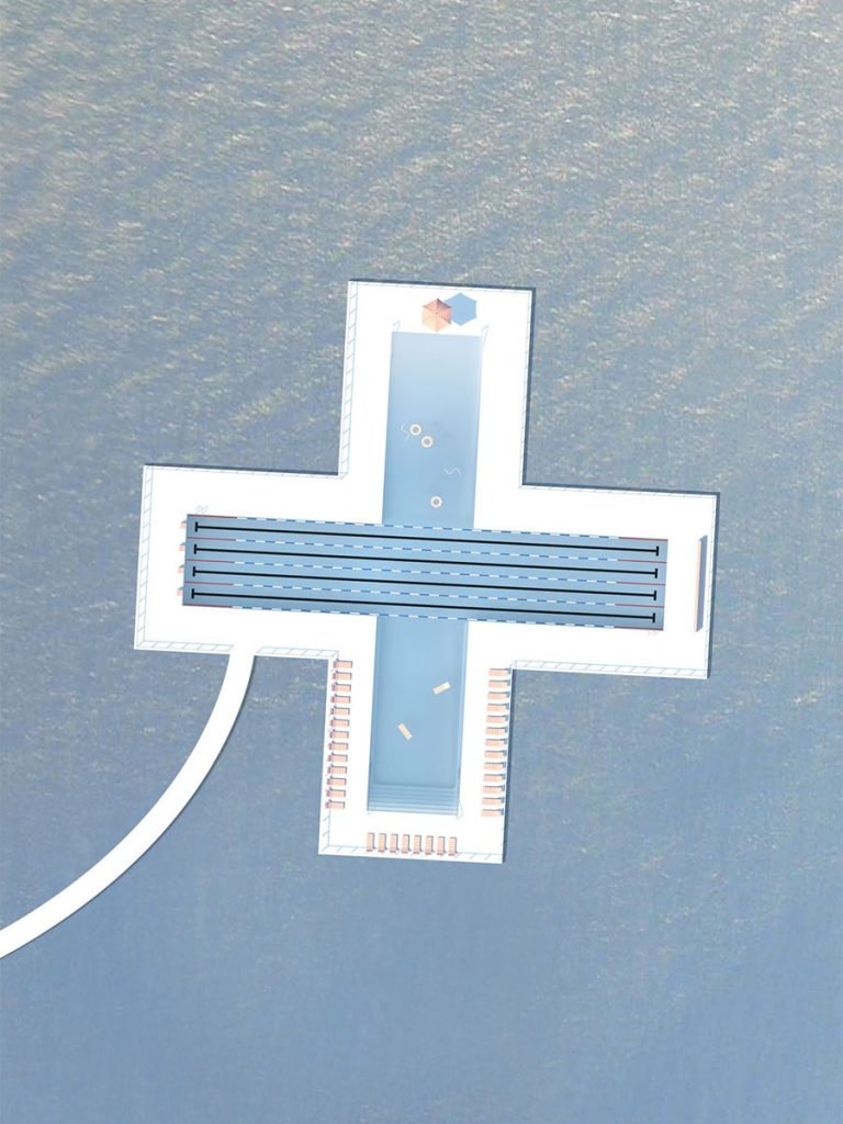 35 號碼頭距離東百老匯地鐵站約 6 分鐘路程,區域內早已設有鞦韆、長椅等設施,是民眾和遊客觀賞東河岸美景的好去處。如今,創意工作室 PLAYLAB 及建築師 Dong-Ping Wong 共同設計了這座形如「+」符號的非營利新泳池,讓民眾抱有更多期待。